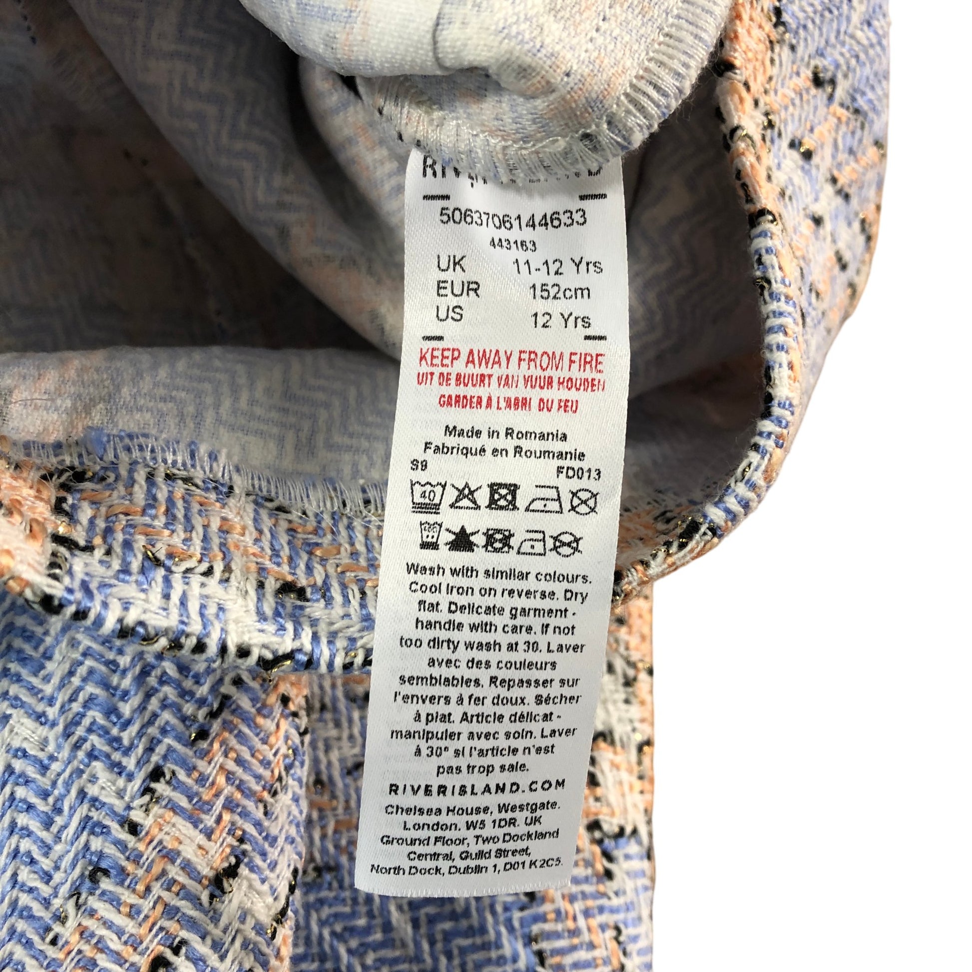 RIVER ISLAND Girls Tweed Mini Skirt Size 12 Years Light Blue Check Pattern