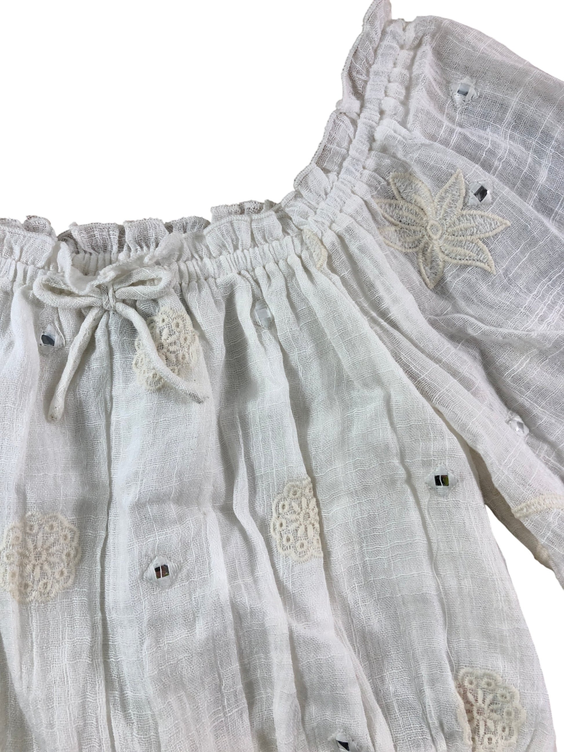 RIVER ISLAND Girls White Embroidered Off Shoulder Blouse Size 9-10 Years