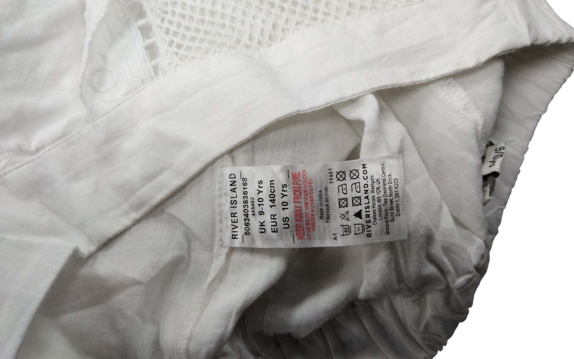 River Island Girls White Lace Trim High Waisted Shorts Size 9-10 Years