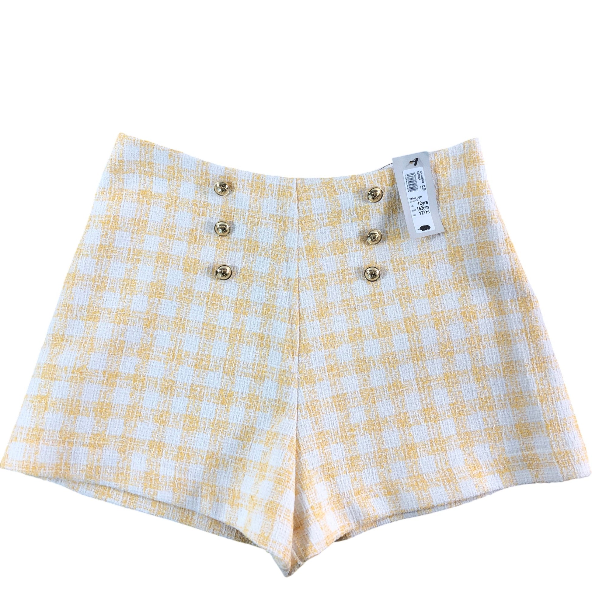 RIVER ISLAND Girls Yellow Light Check High Waisted Shorts Size 12 Years