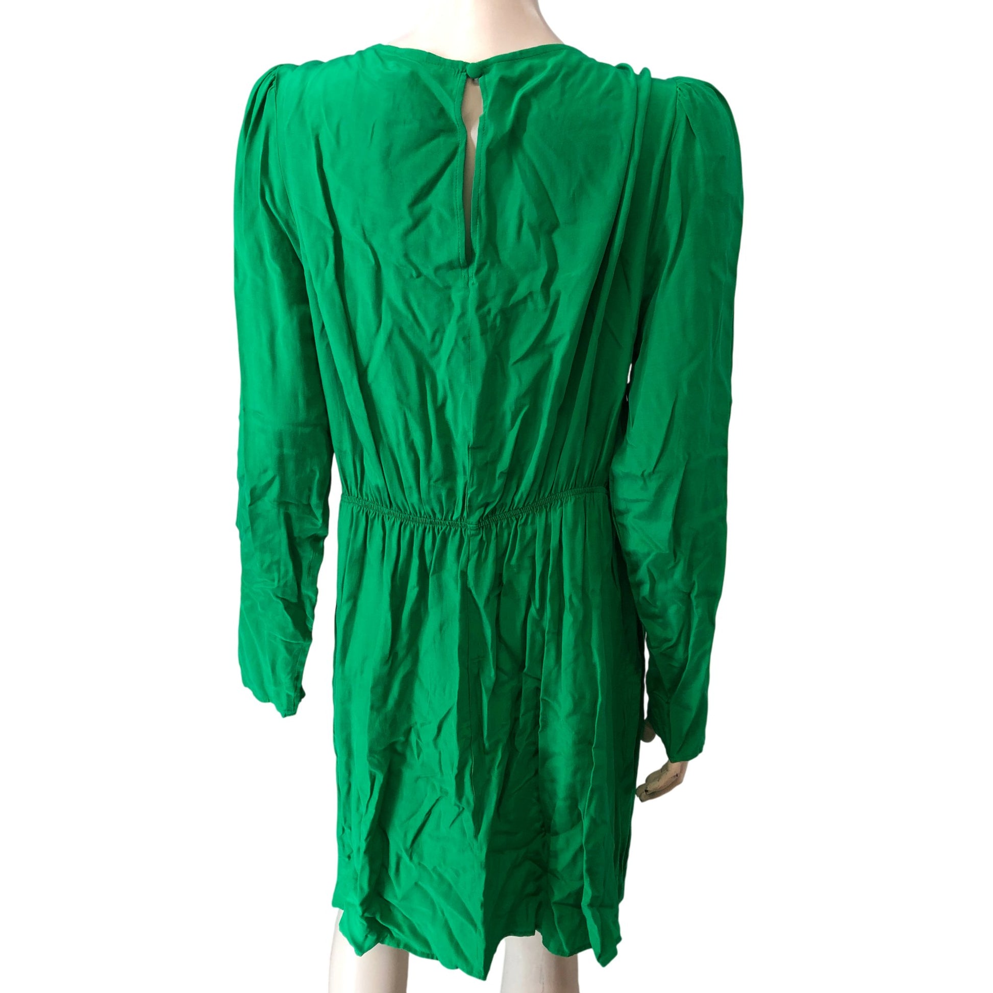 River Island Green Viscose Dress UK16 Women's Long Sleeve Pleated Design