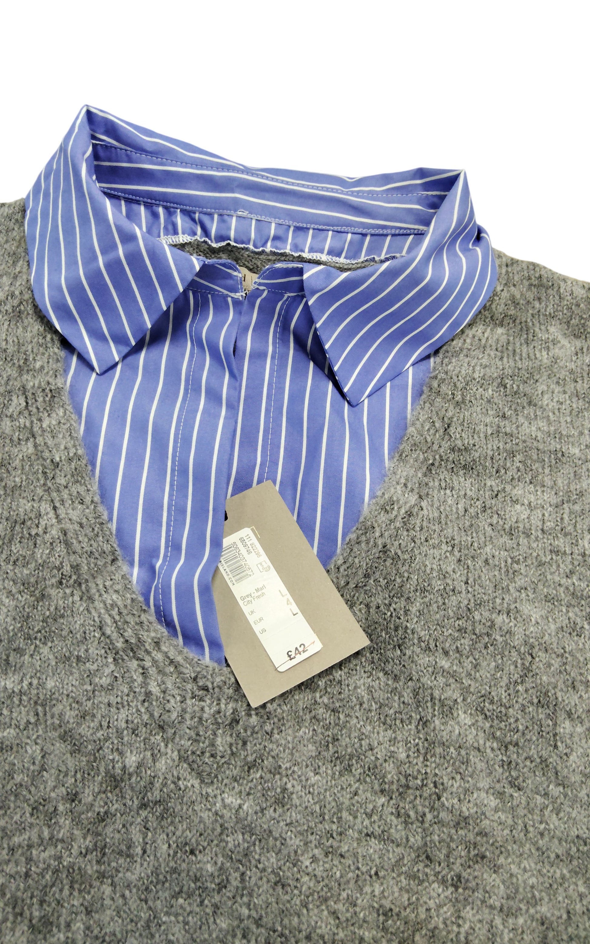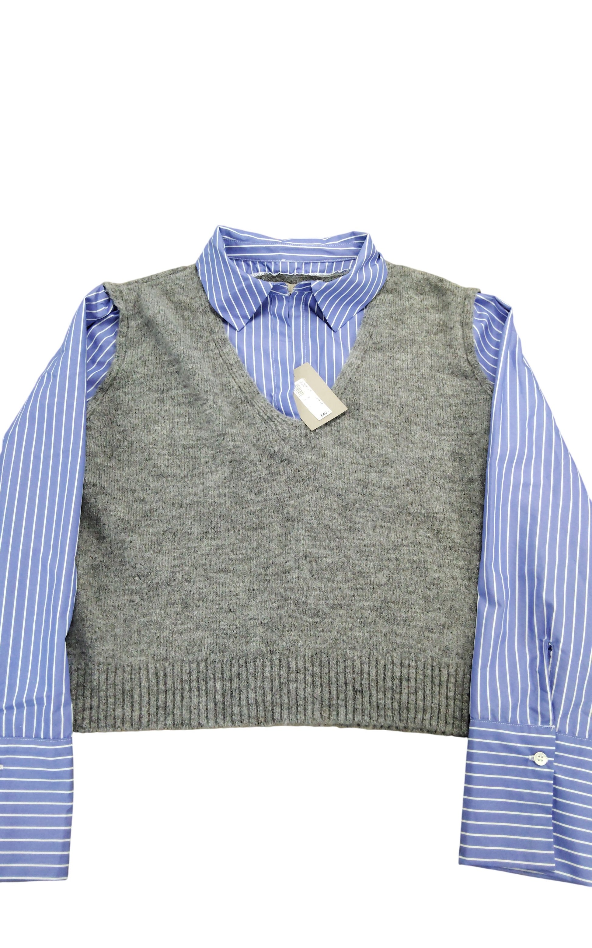 River Island Grey V Neck Cropped Vest Top Size 4 Womens Layered Look