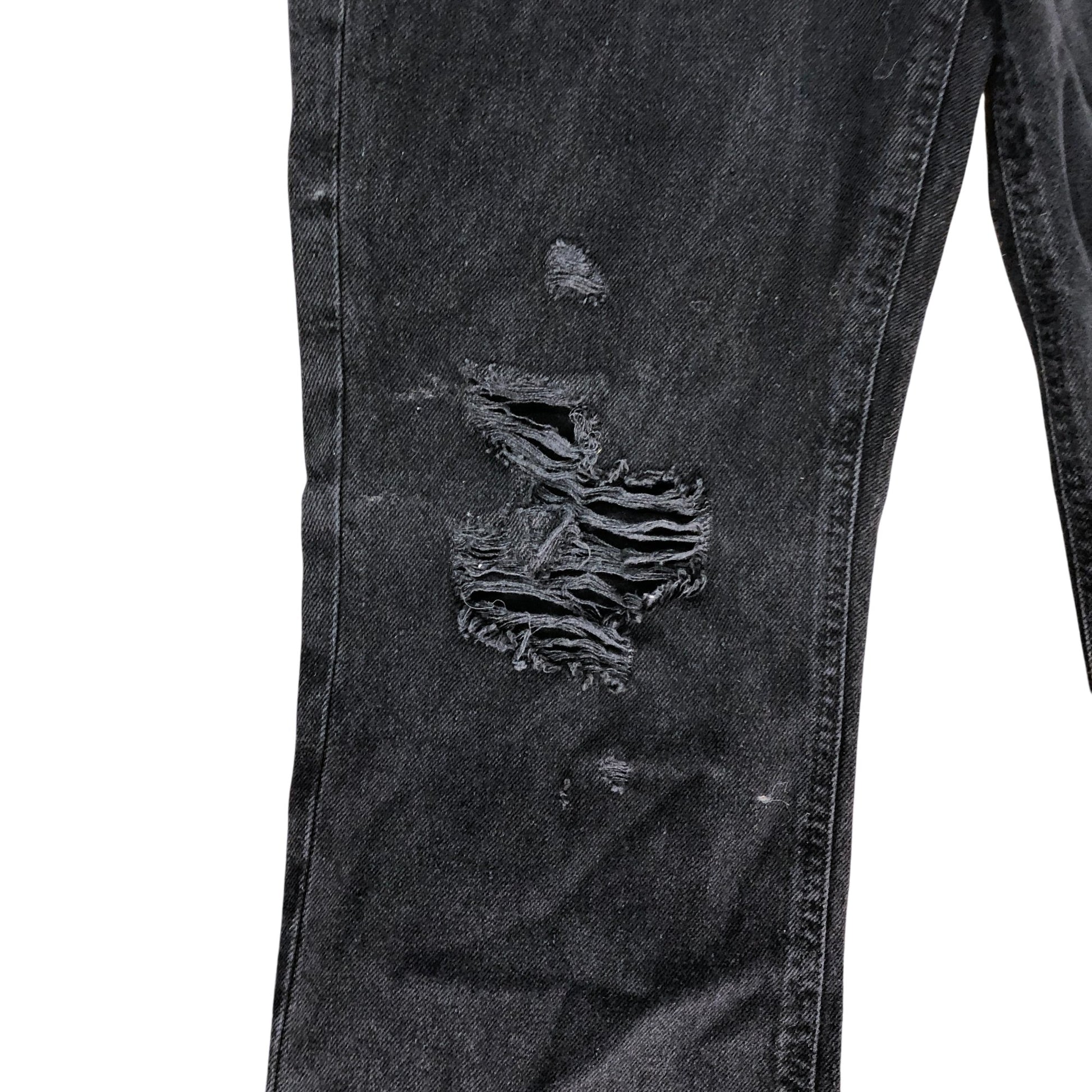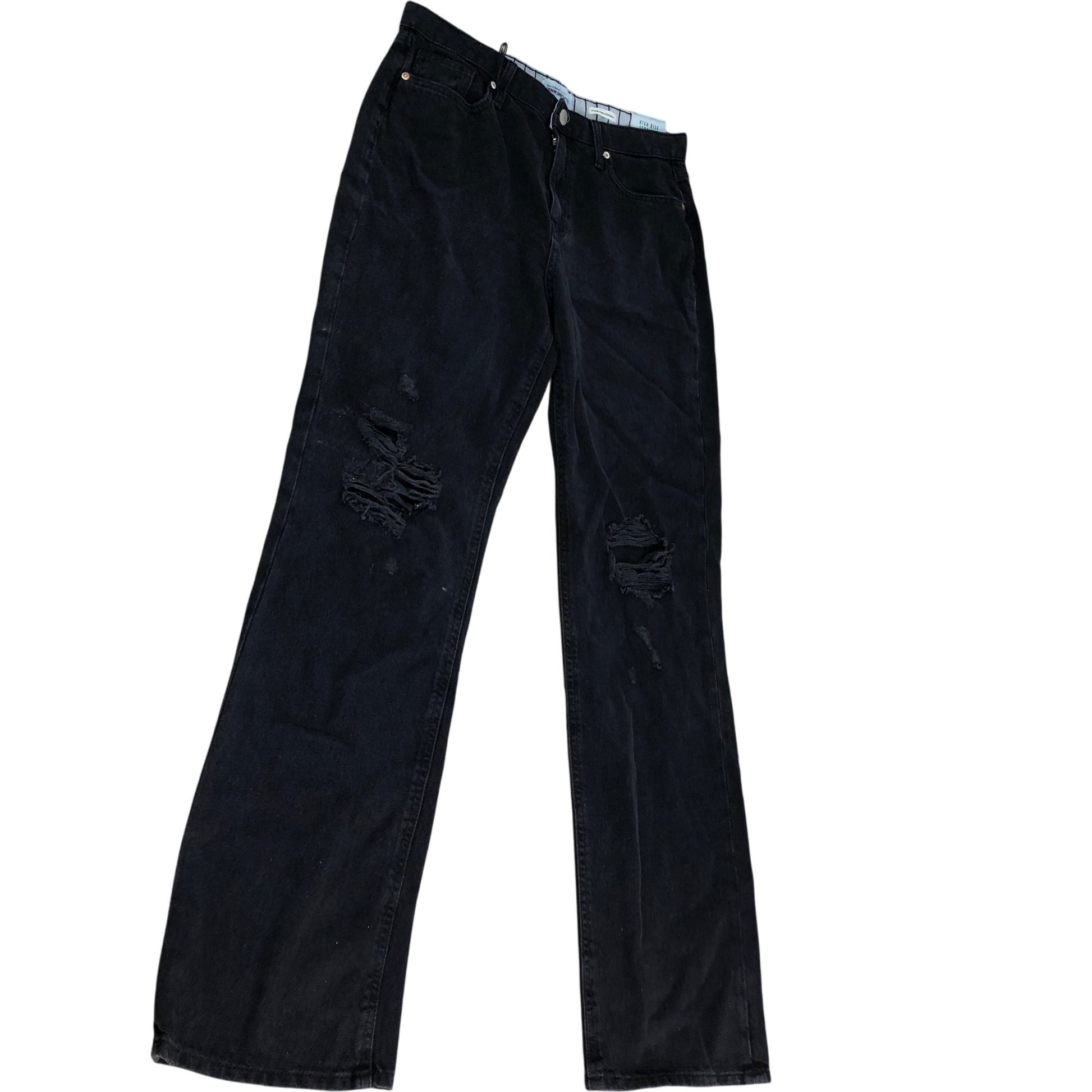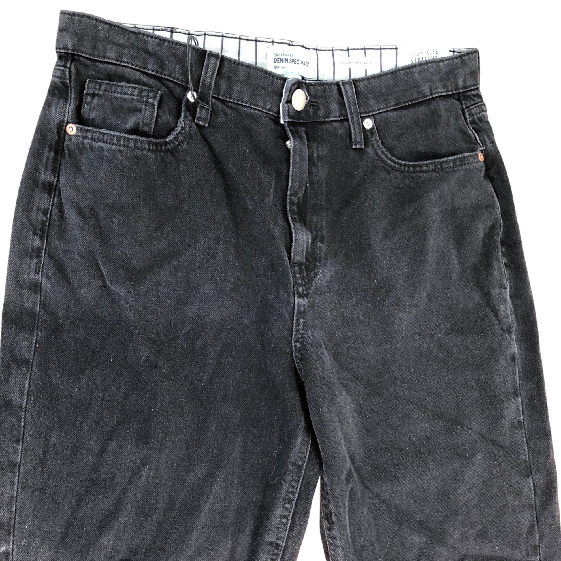 River Island High Rise Straight Jeans 12L Women's Black Denim with Rips