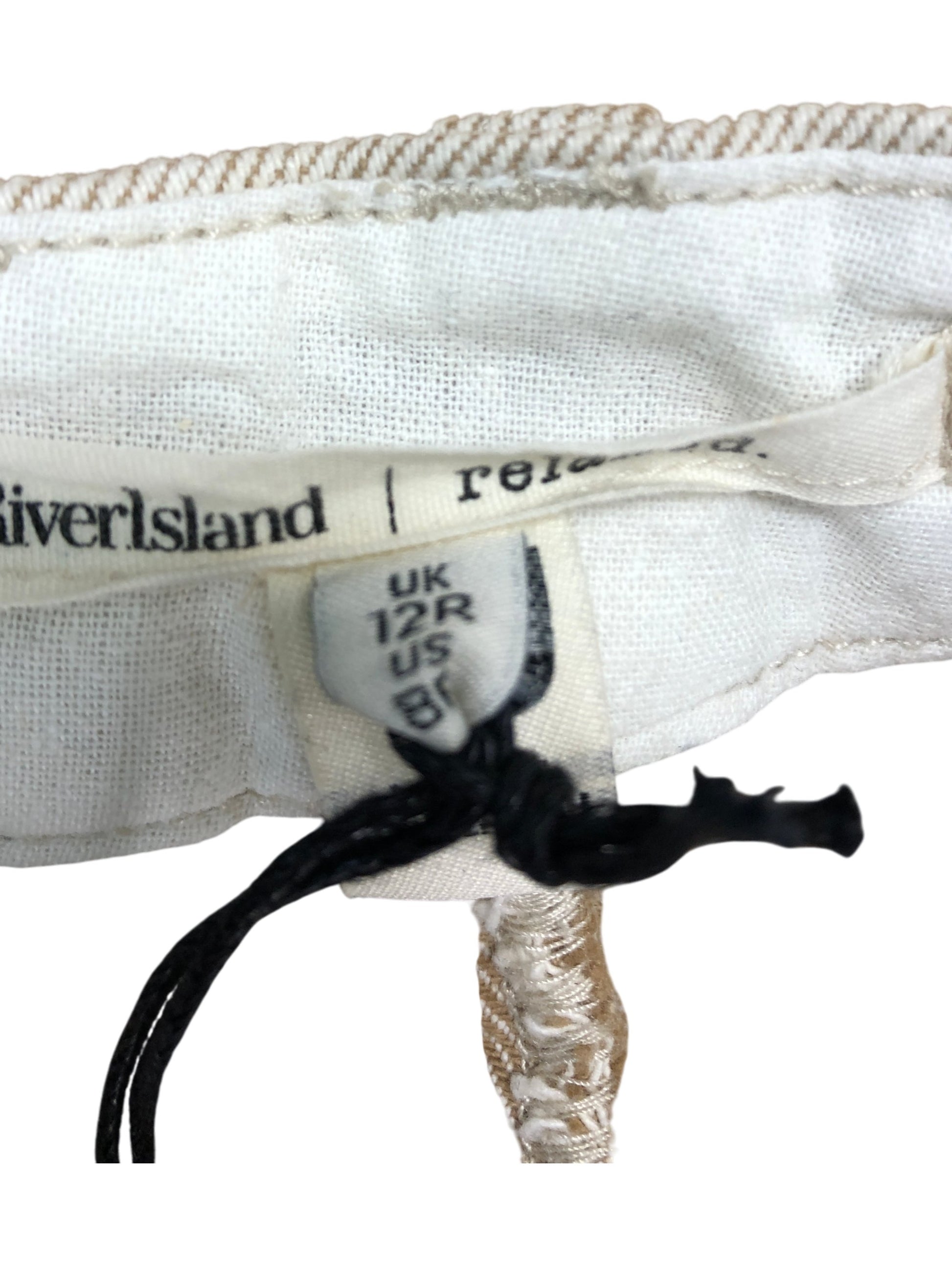 River Island High Waist Trousers UK12 Women's Beige Lightweight Tailored Fit