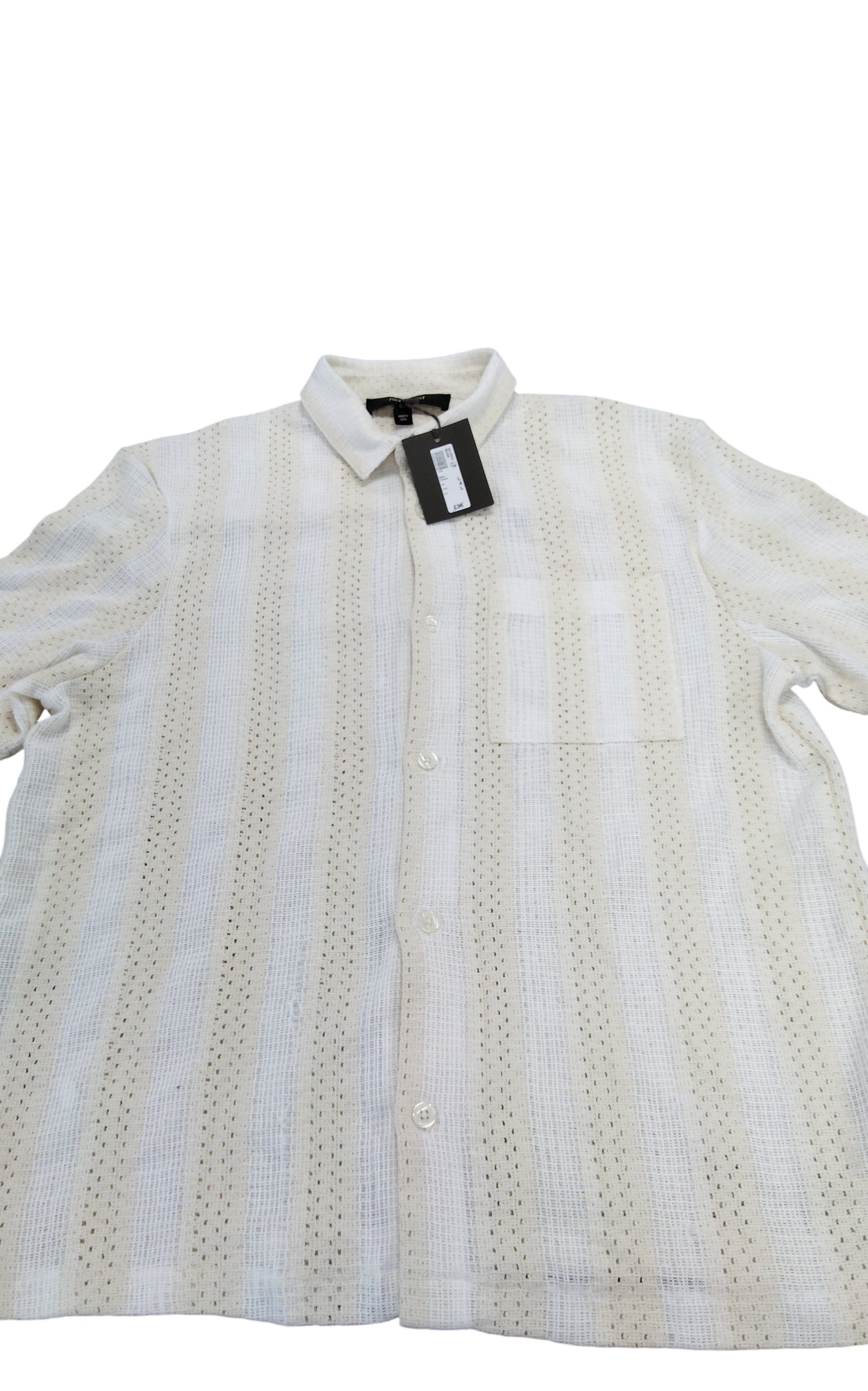 River Island L Button Up Shirt New White Striped Casual Men's Top