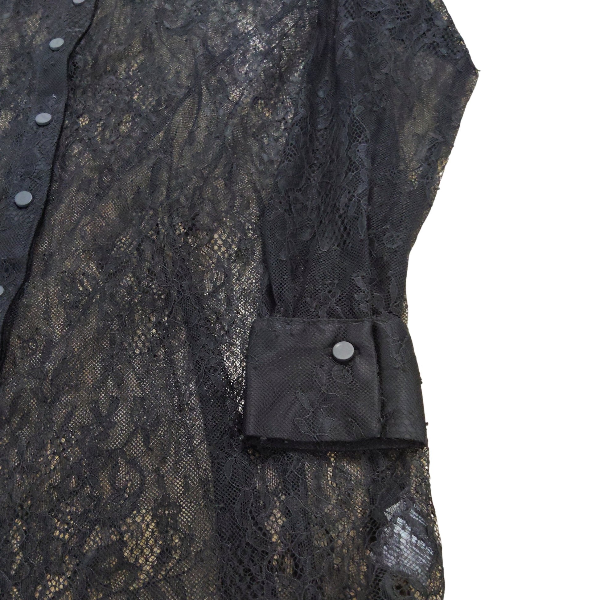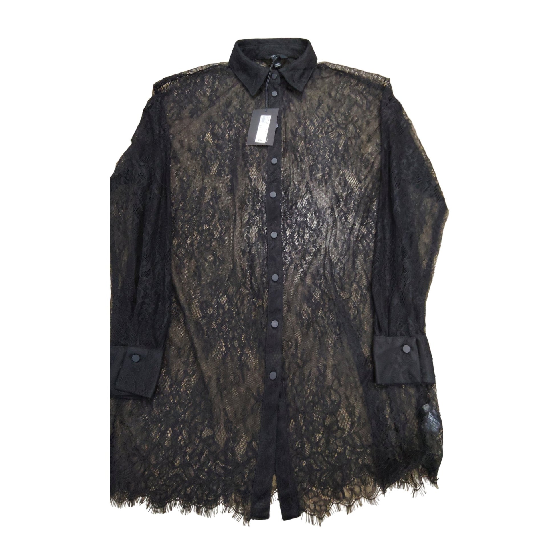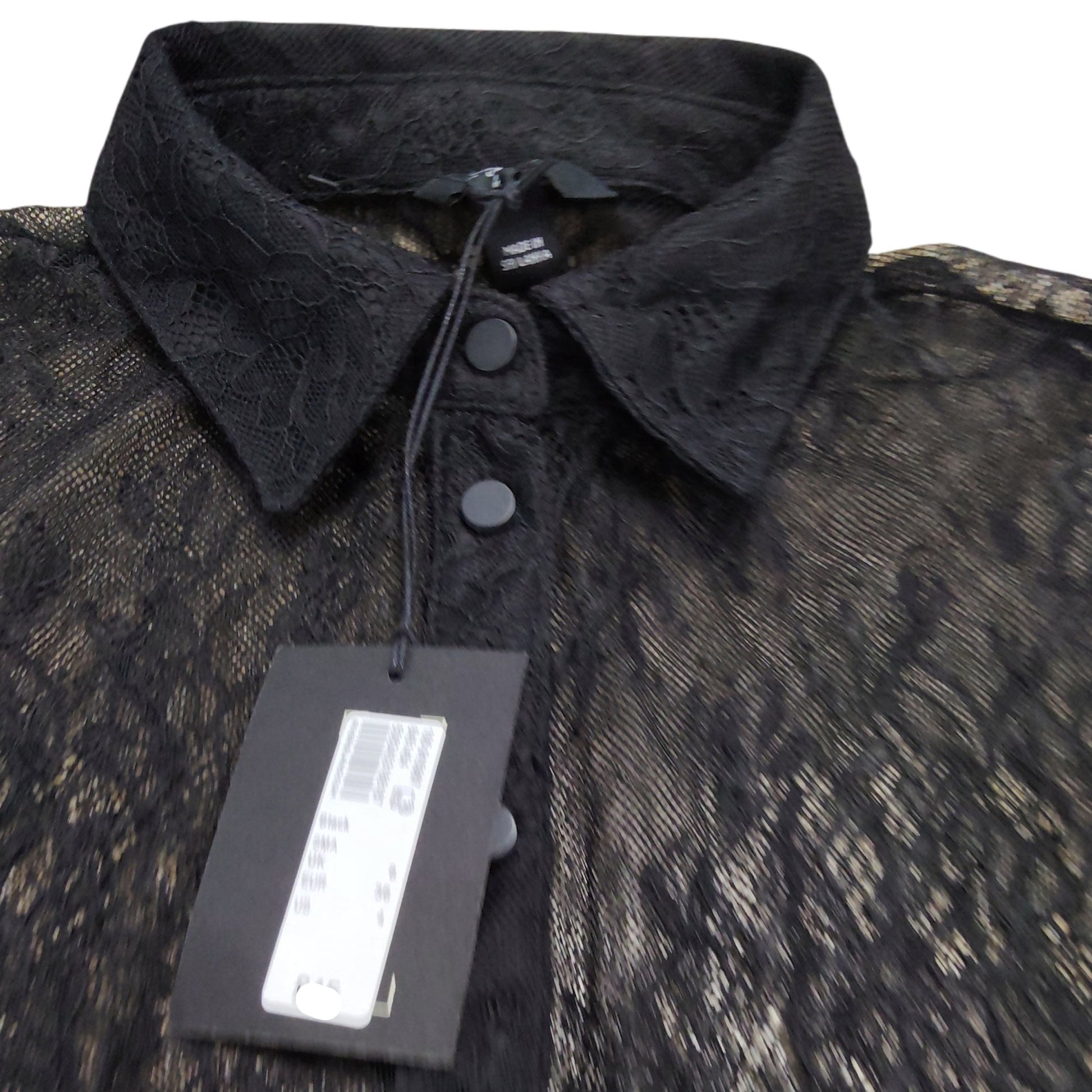 River Island Lace Blouse Black UK6 Women's Sheer Long Sleeve Button Up Chic Top