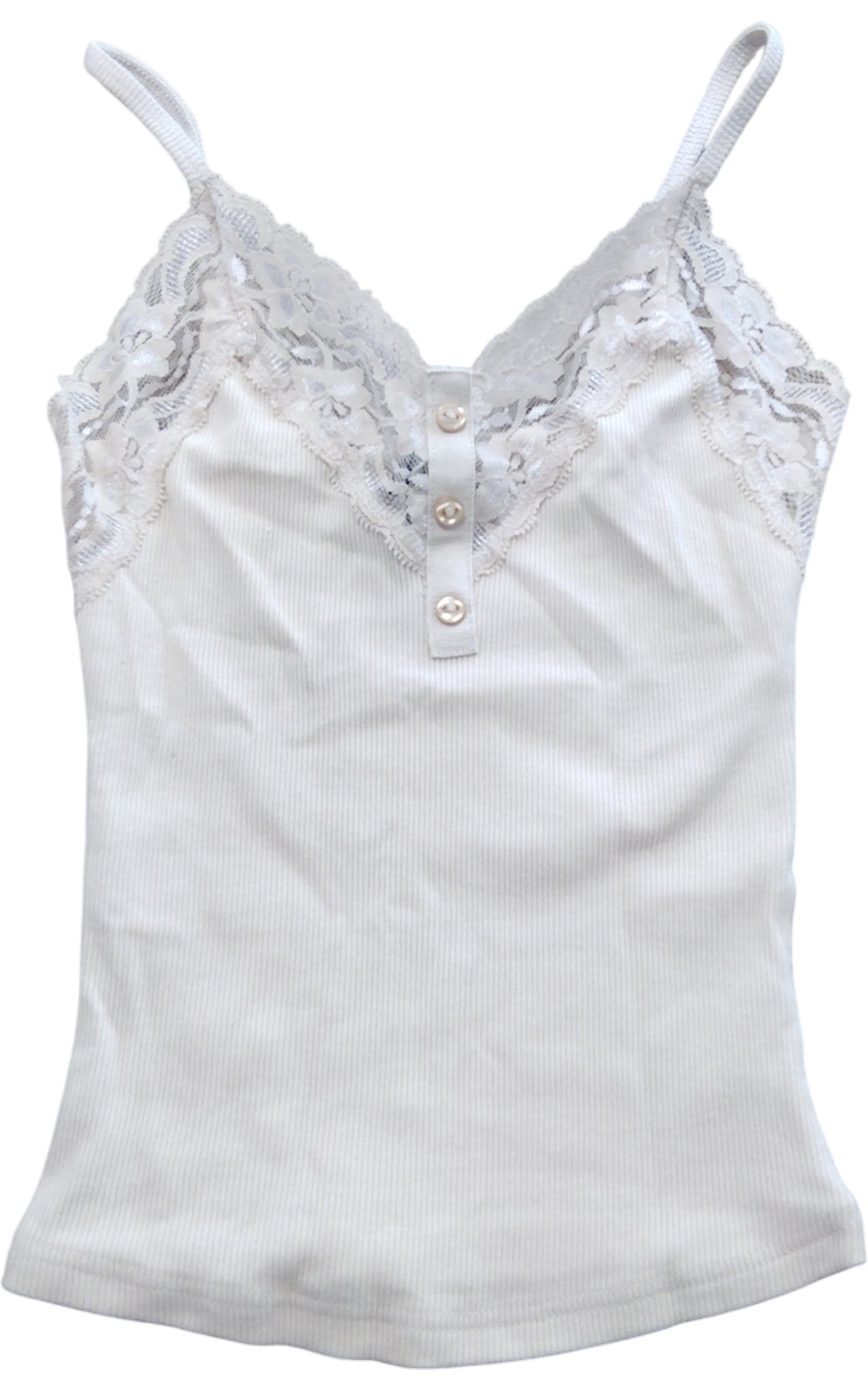 River Island Lace Trim Camisole Top Size XS Women's Cream Ribbed Blend