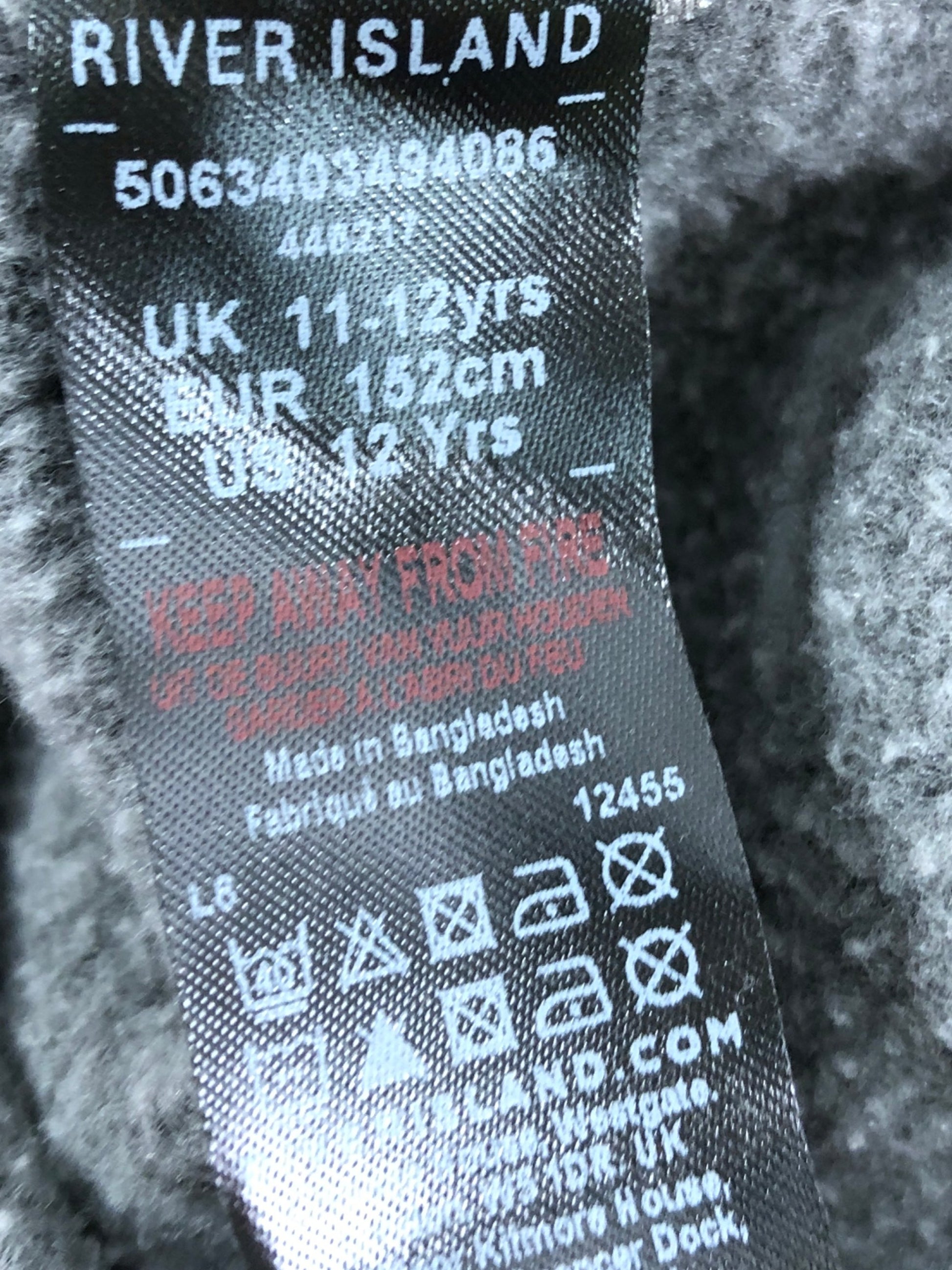 River Island Limón Print Jumper UK11-12 Years Kids Grey Cotton Blend Sweatshirt