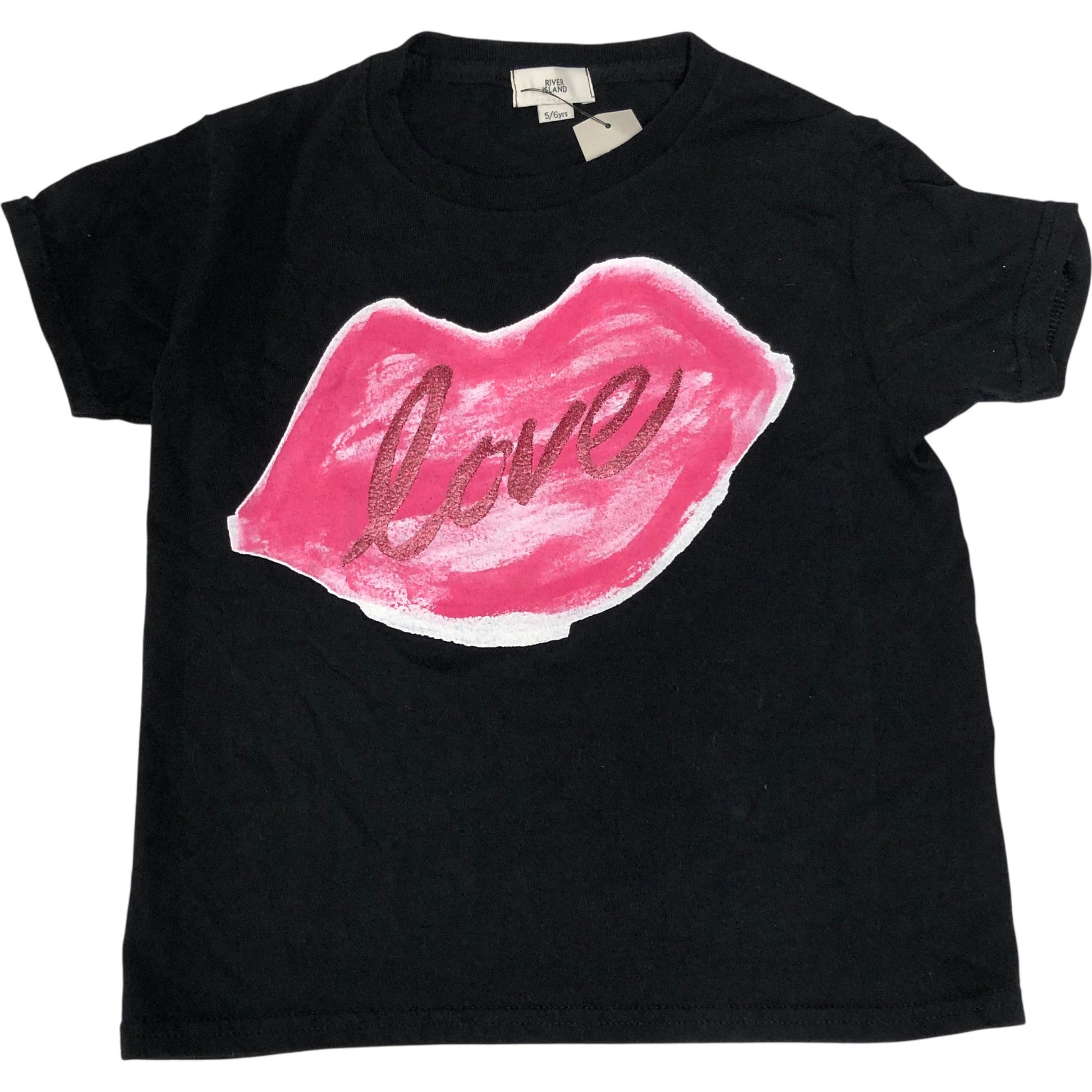 River Island Love Print T-Shirt Kids 5-6 Years Unisex Short Sleeve Black