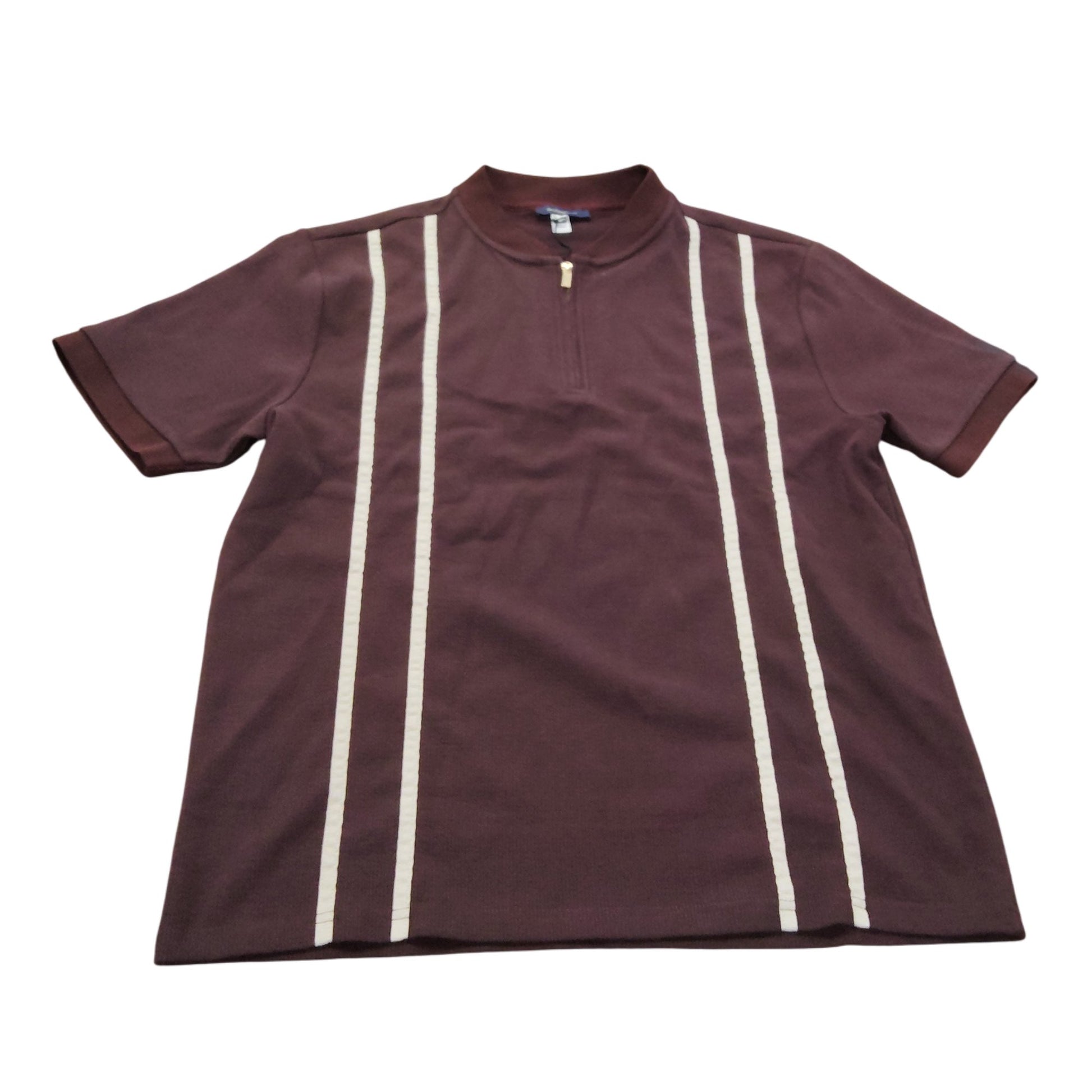 River Island Men’s Burgundy Short Sleeved Polo Shirt UK Size Large Zip Neck