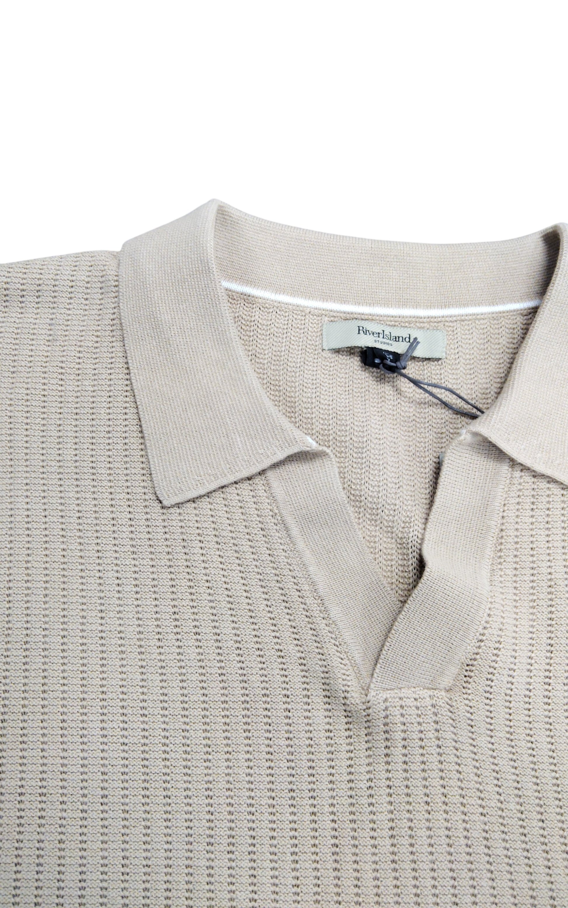 River Island Men’s XL Beige Polo Short Sleeve Collar Soft Knit Top