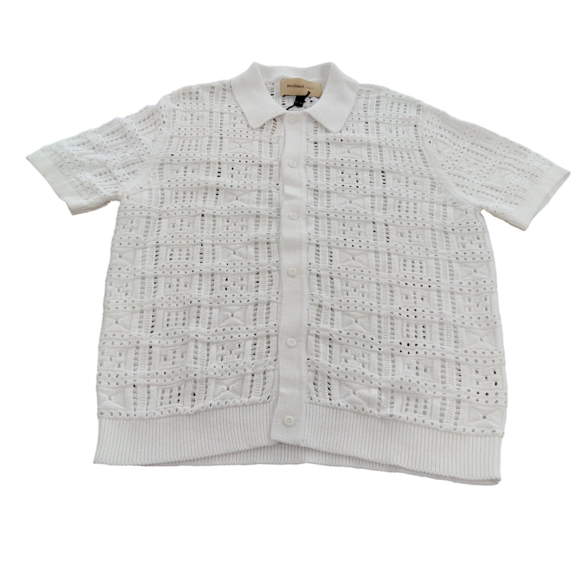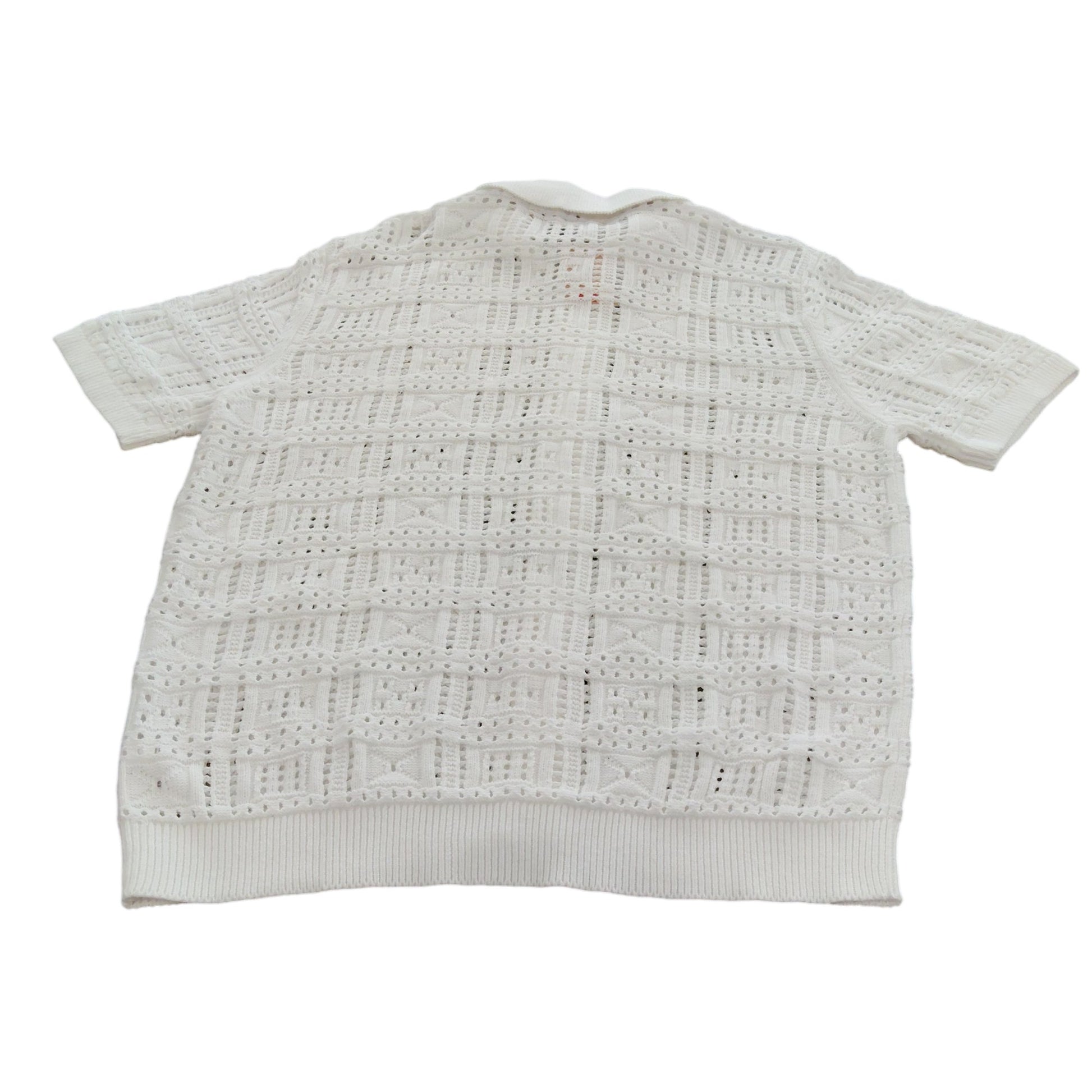 River Island Men's Short Sleeve Cardigan Large White Knitted Crochet Style