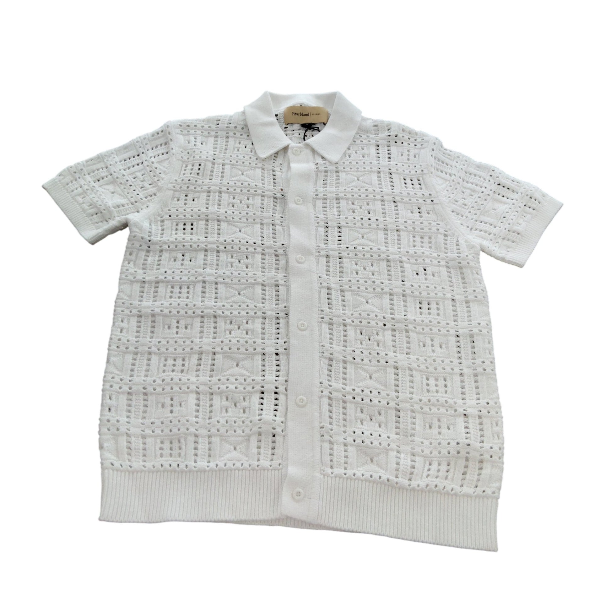 River Island Men's Short Sleeve White Knitted Cardigan Size M Stylish Design