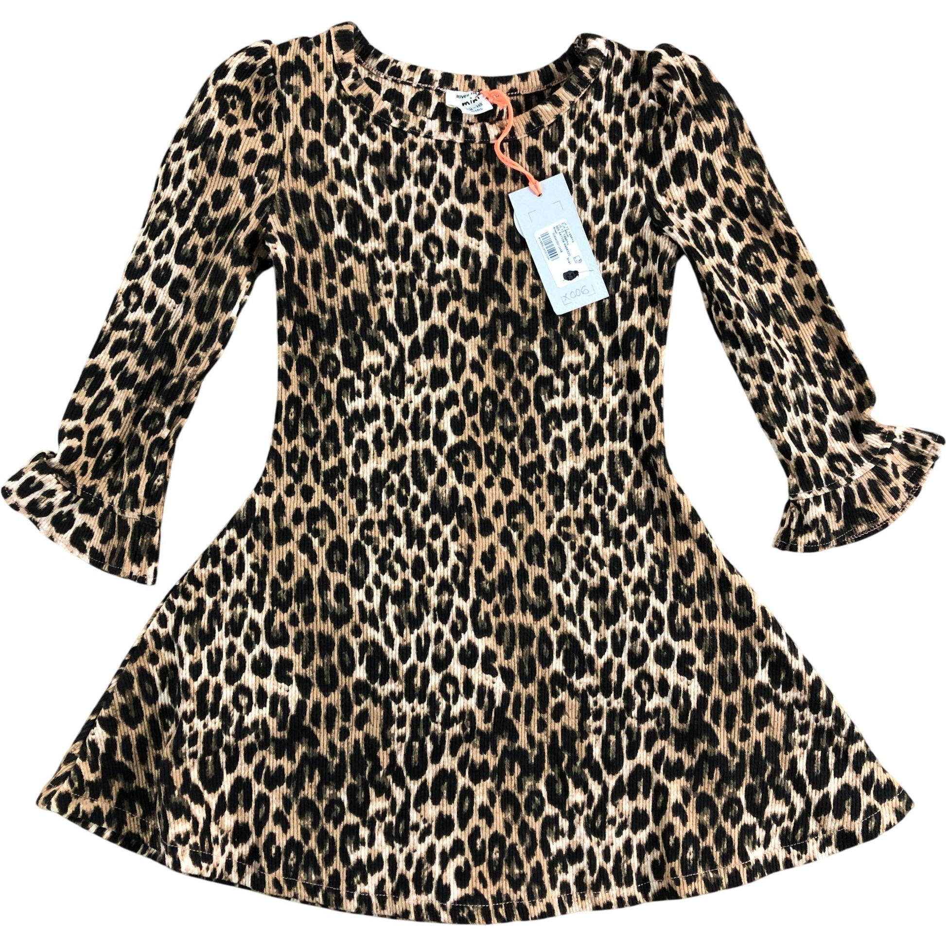 River Island Mini Dress 12-18 Months Girls Leopard Print Long Sleeve Brown