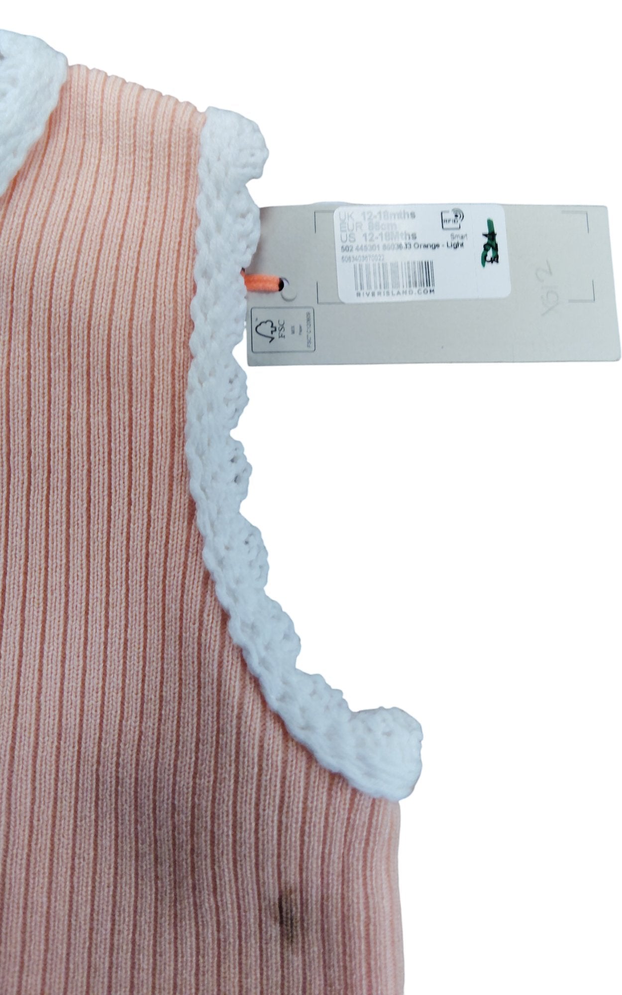 River Island Mini Girls Dress 12-18 Months Coral Pink Shell Trim Ribbed Style