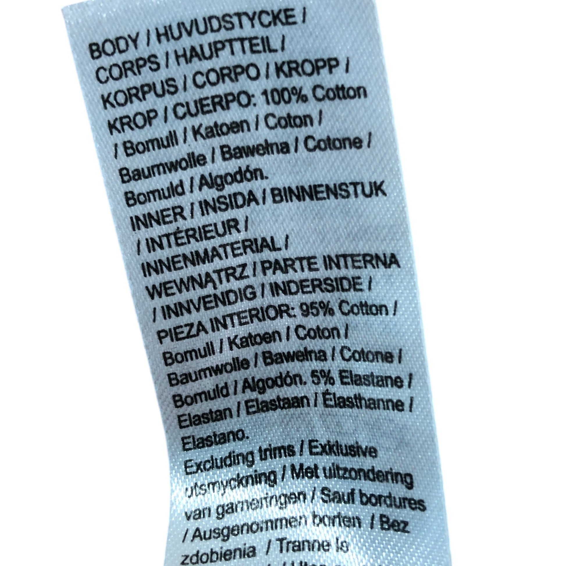Body: 100% Cotton, Interior: 95% Cotton, 5% Elastane