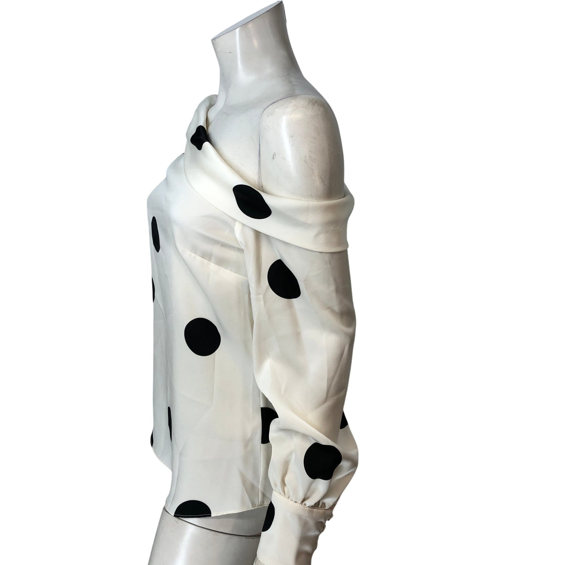 River Island Off Shoulder Blouse UK8 Women's Cream Polka Dot Satin Top