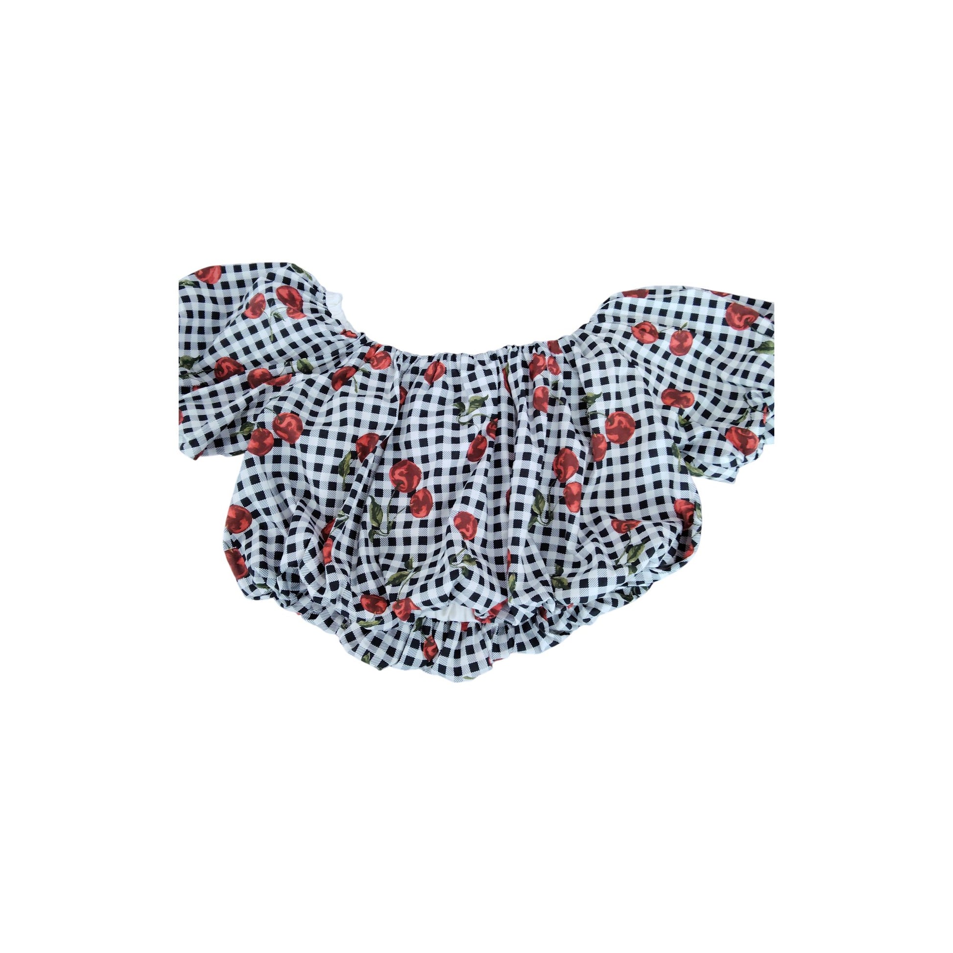 River Island Off Shoulder Top UK7 8yrs Women's Gingham Floral Puff Sleeve