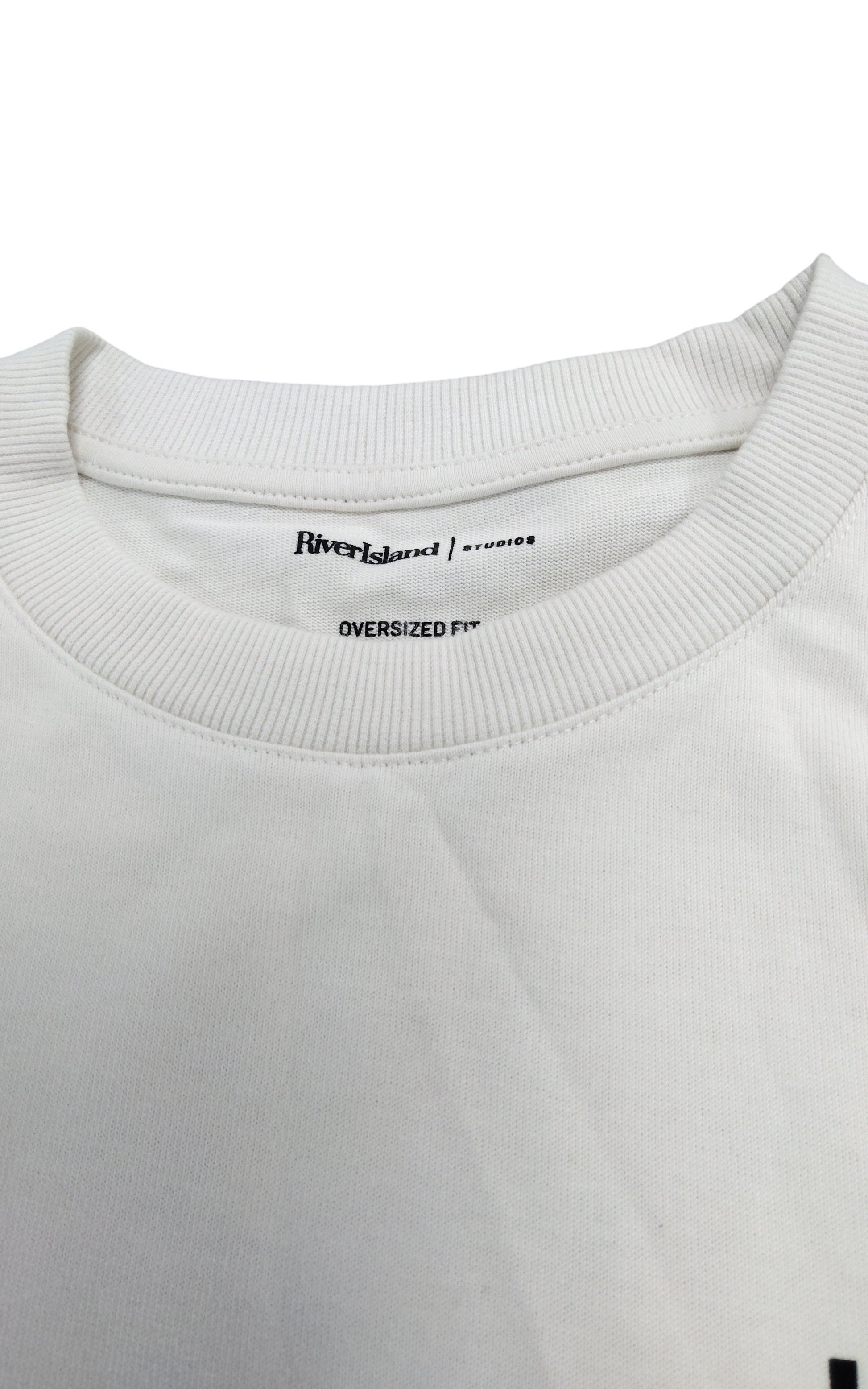 River Island Oversized Fit T-Shirt Luminis Saint-Antoine White Cotton UK L