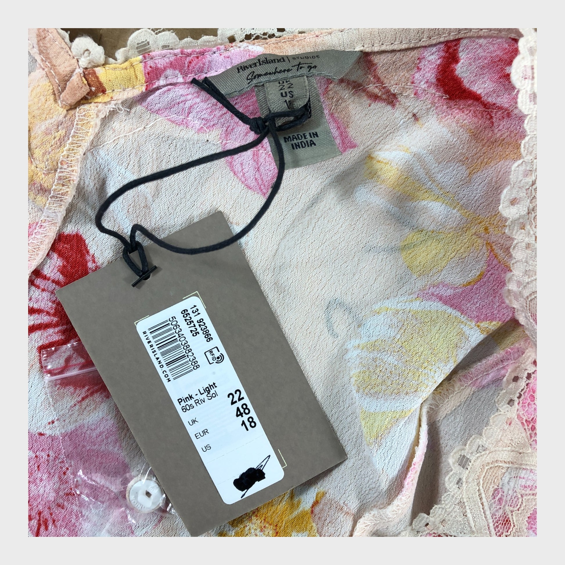 RIVER ISLAND Pink Floral Print Angel Sleeve Blouse UK22