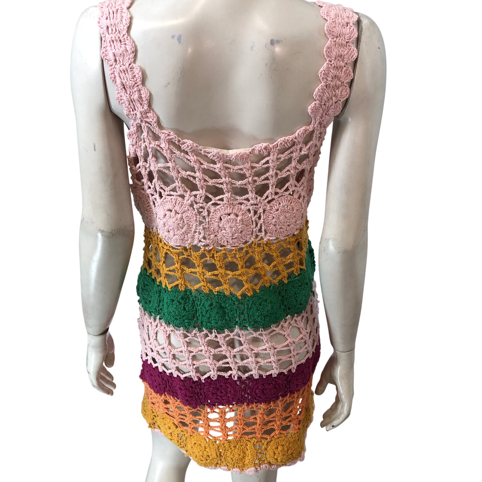 River Island Poolside Pink Dress UK8 Crocheted Multi Colour Swimwear Resort