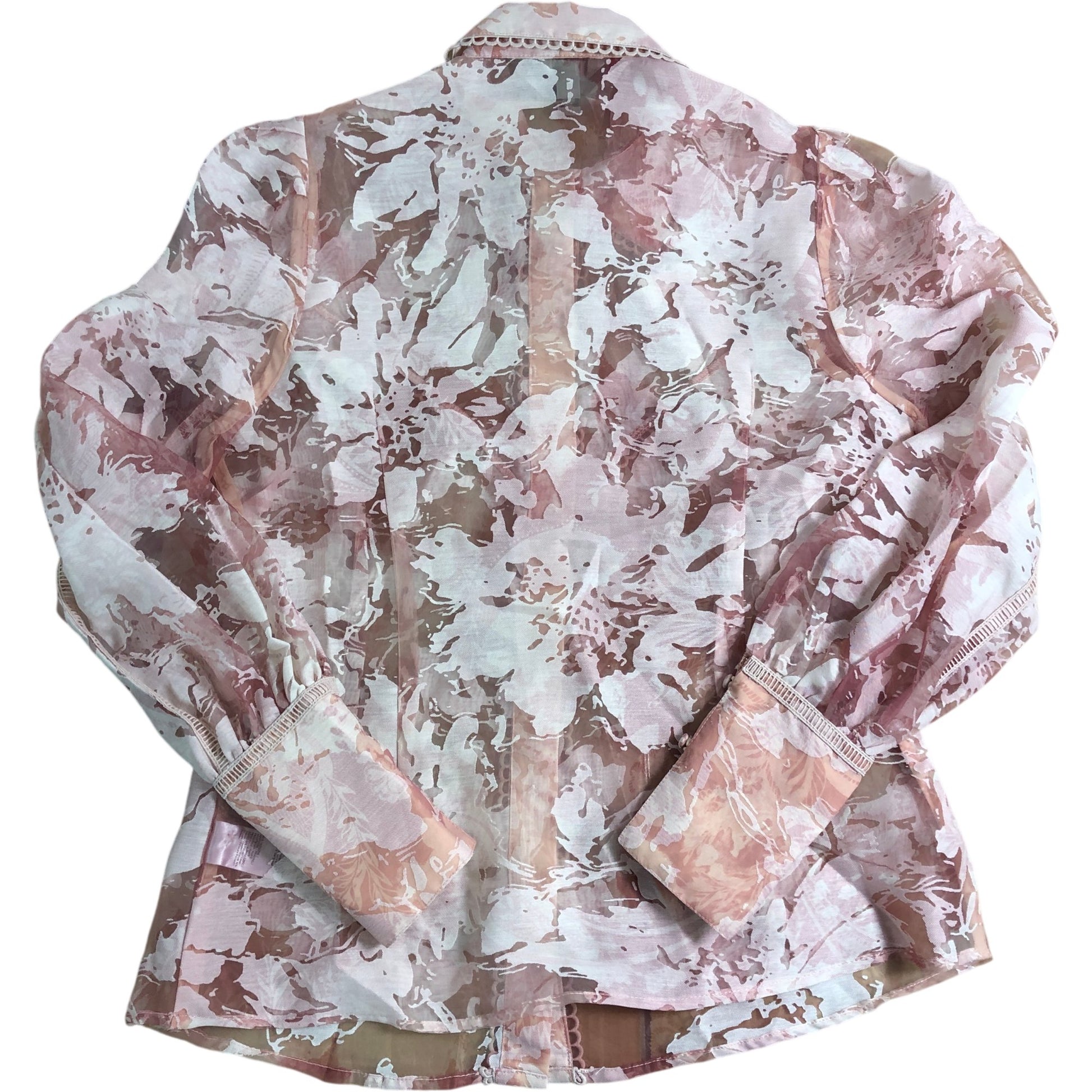 River Island Print Blouse UK10 Women's Sheer Pink Lightweight Shirt