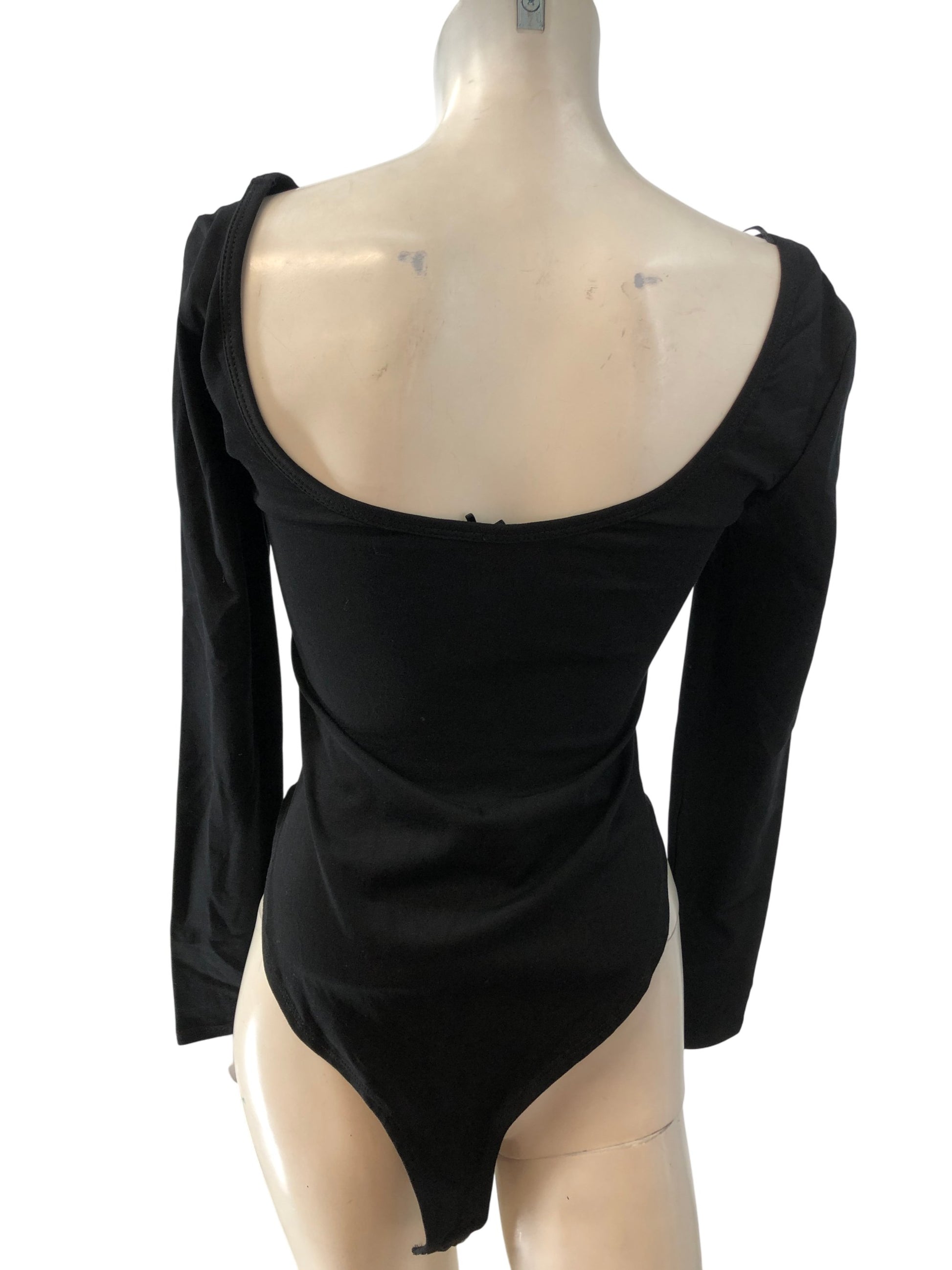 River Island Relaxed Bodysuit UK8 Women's Long Sleeve Black Cotton Blend