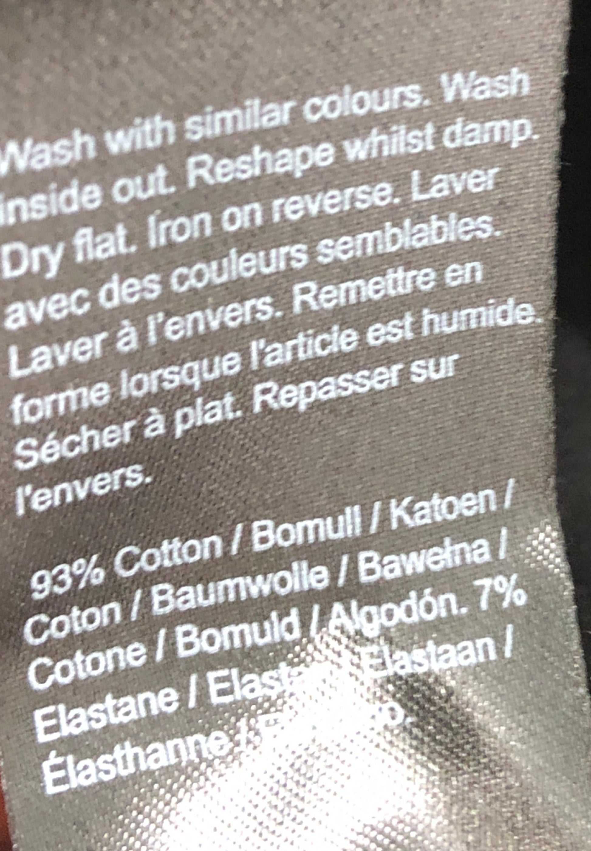 - Care Instructions: Wash with similar colours, wash inside out, reshape whilst damp, dry flat, iron on reverse