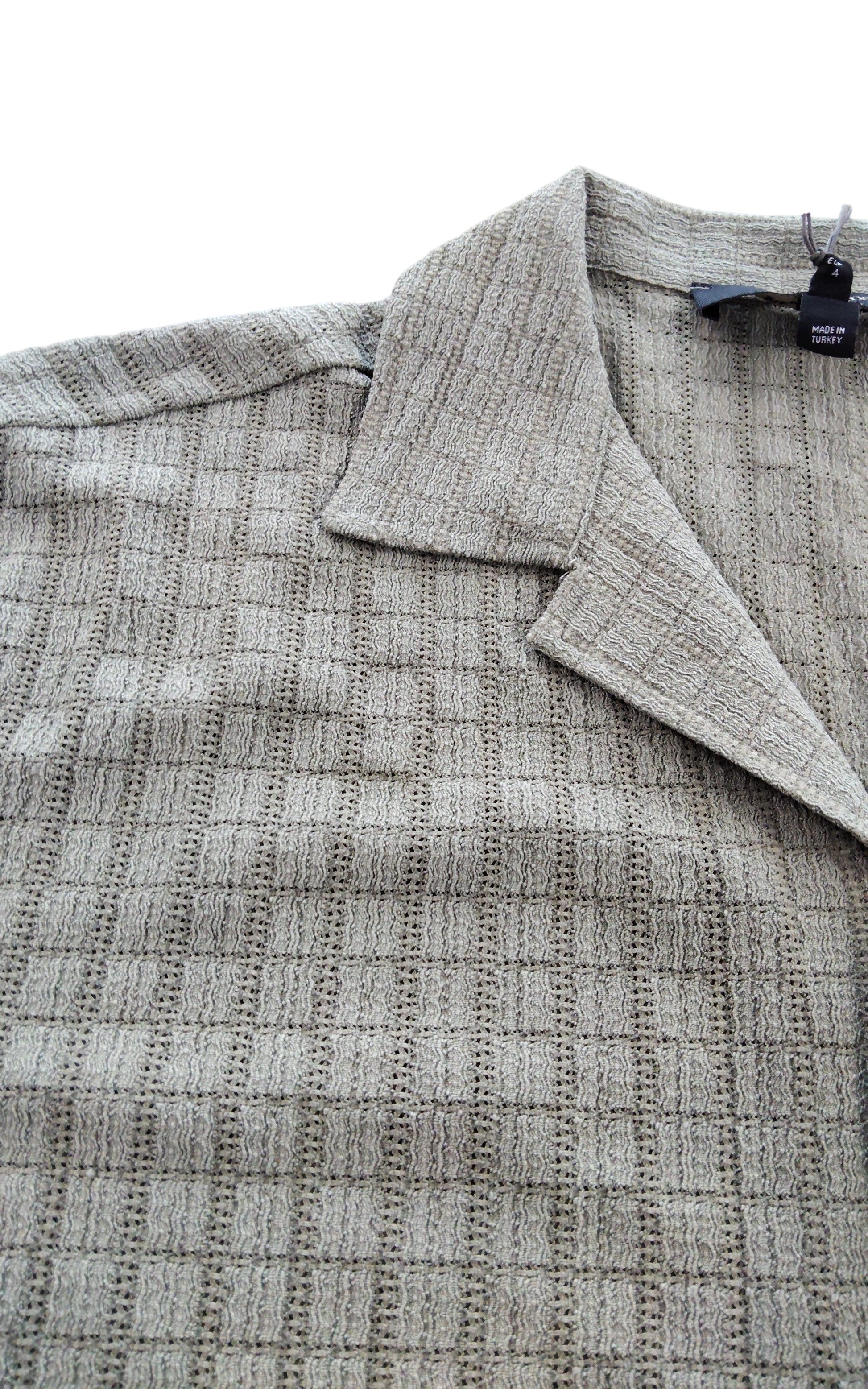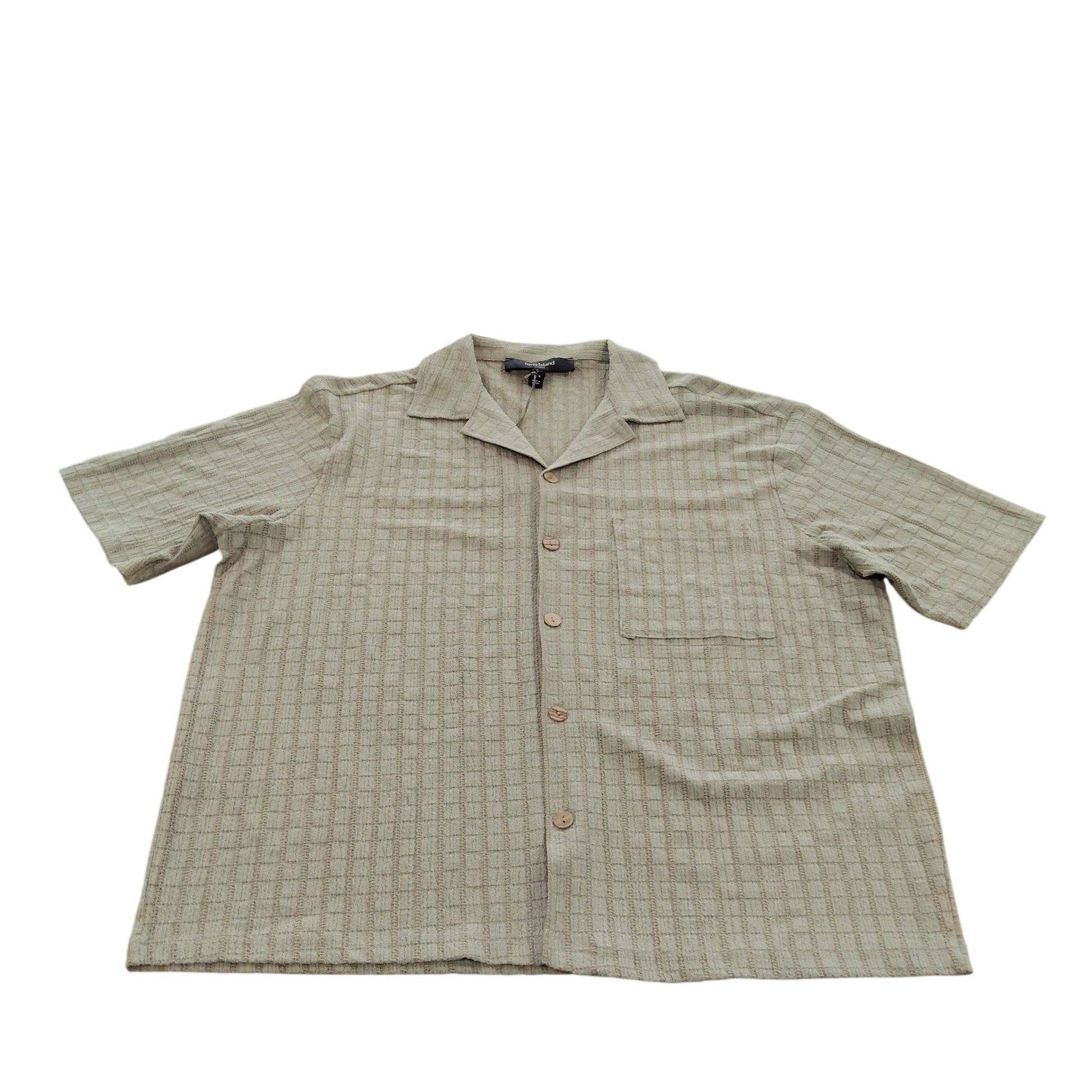 River Island Short Sleeve Shirt L Men's Casual Green Waffle Pattern Button Up