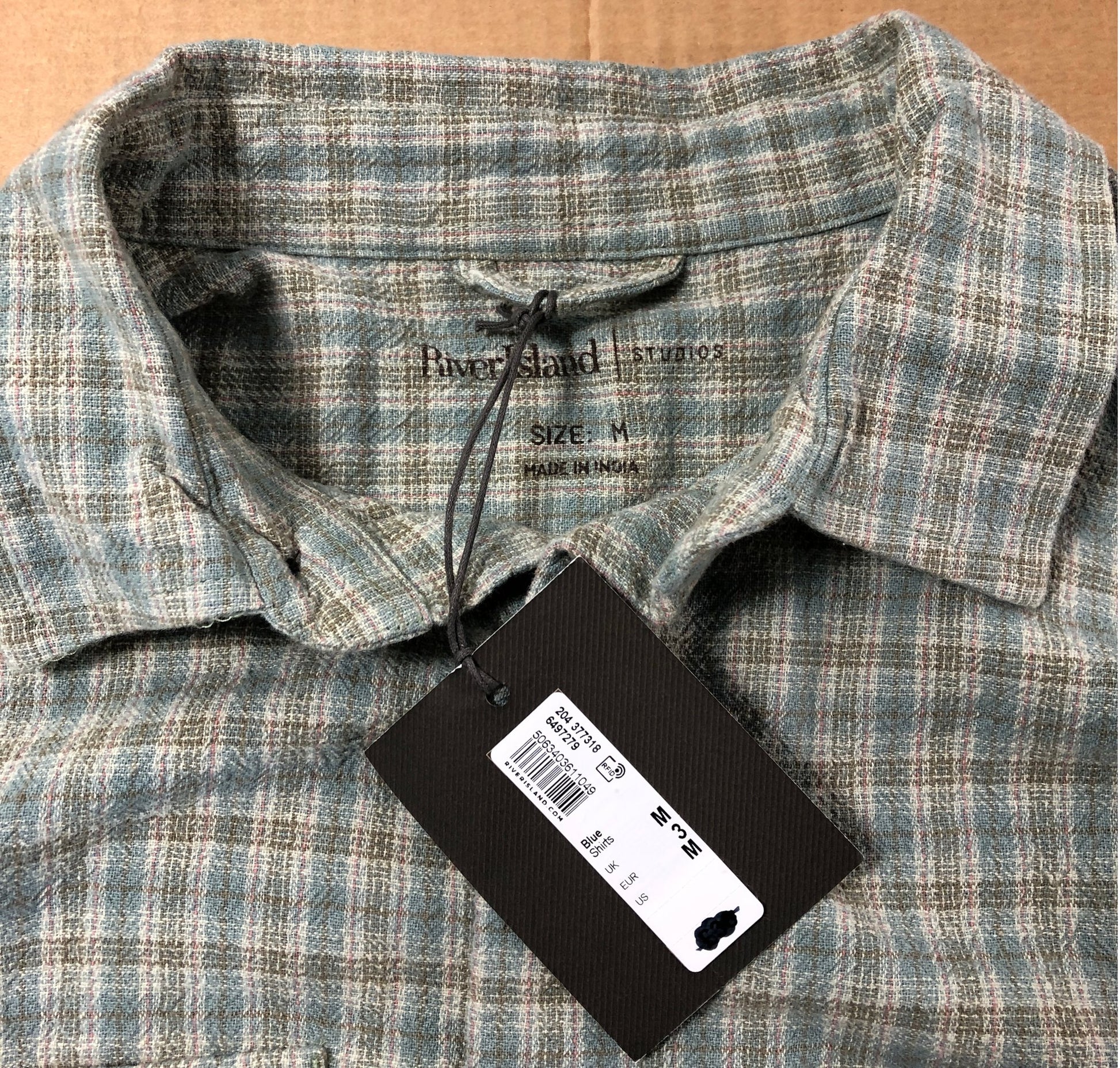 RIVER ISLAND Short Sleeve Shirt Size M Men's Check Cotton Textured Blue