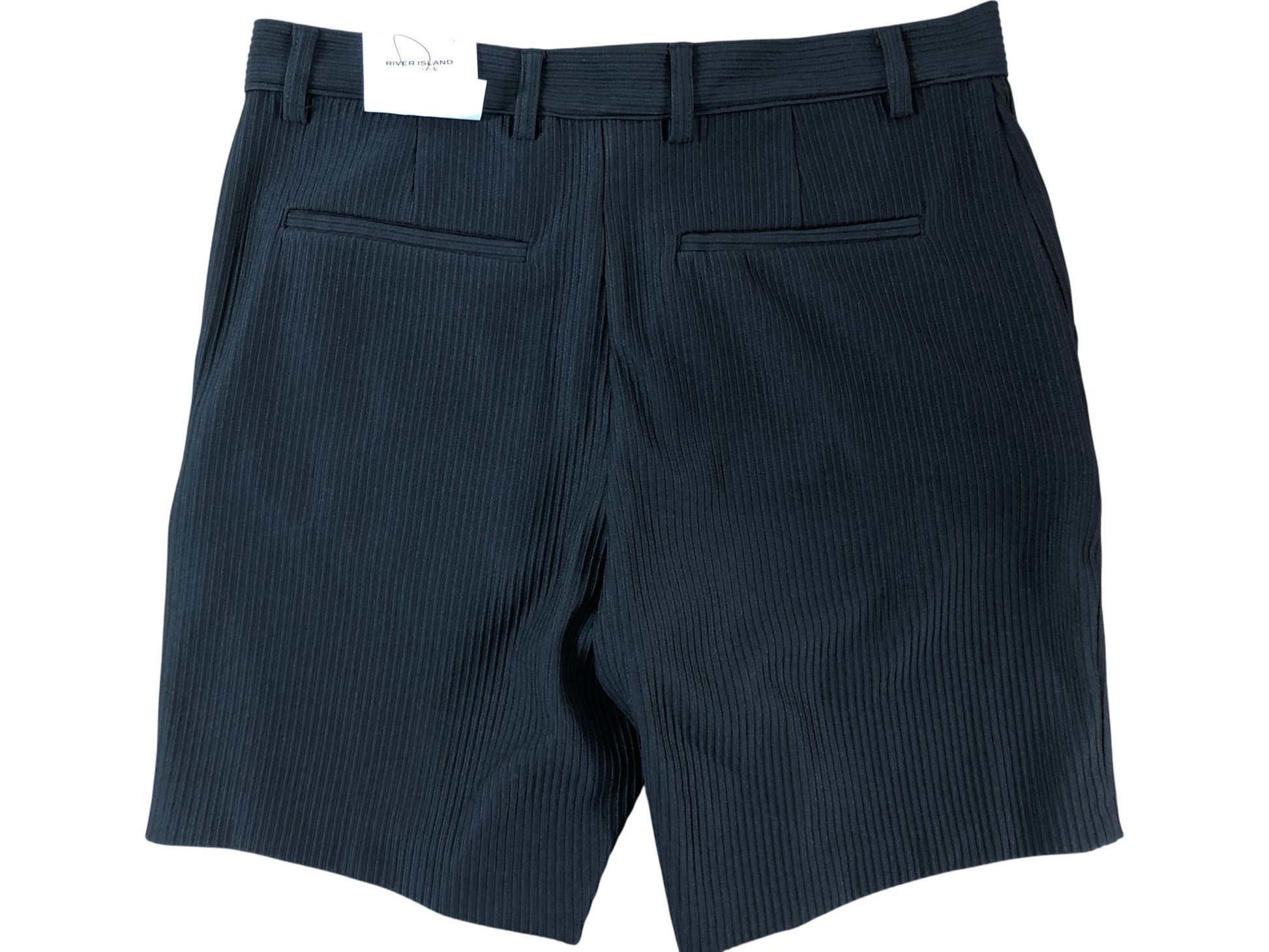River Island Slim Fit Black Shorts W32 Men's Ribbed Polyester Casual Style