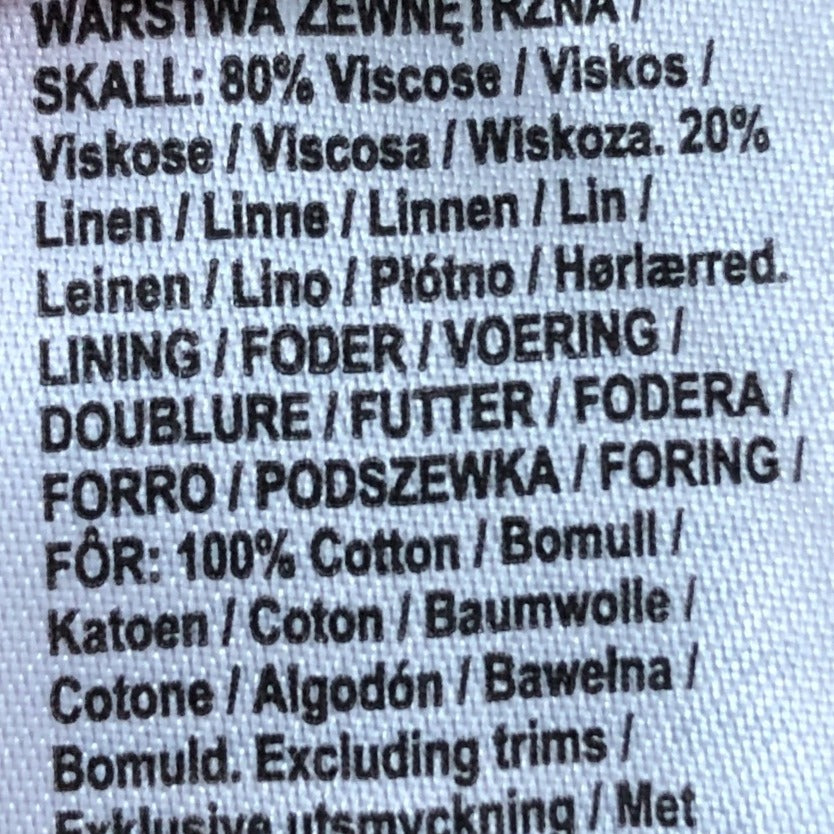 80% Viscose, 20% Linen. Lining: 100% Cotton