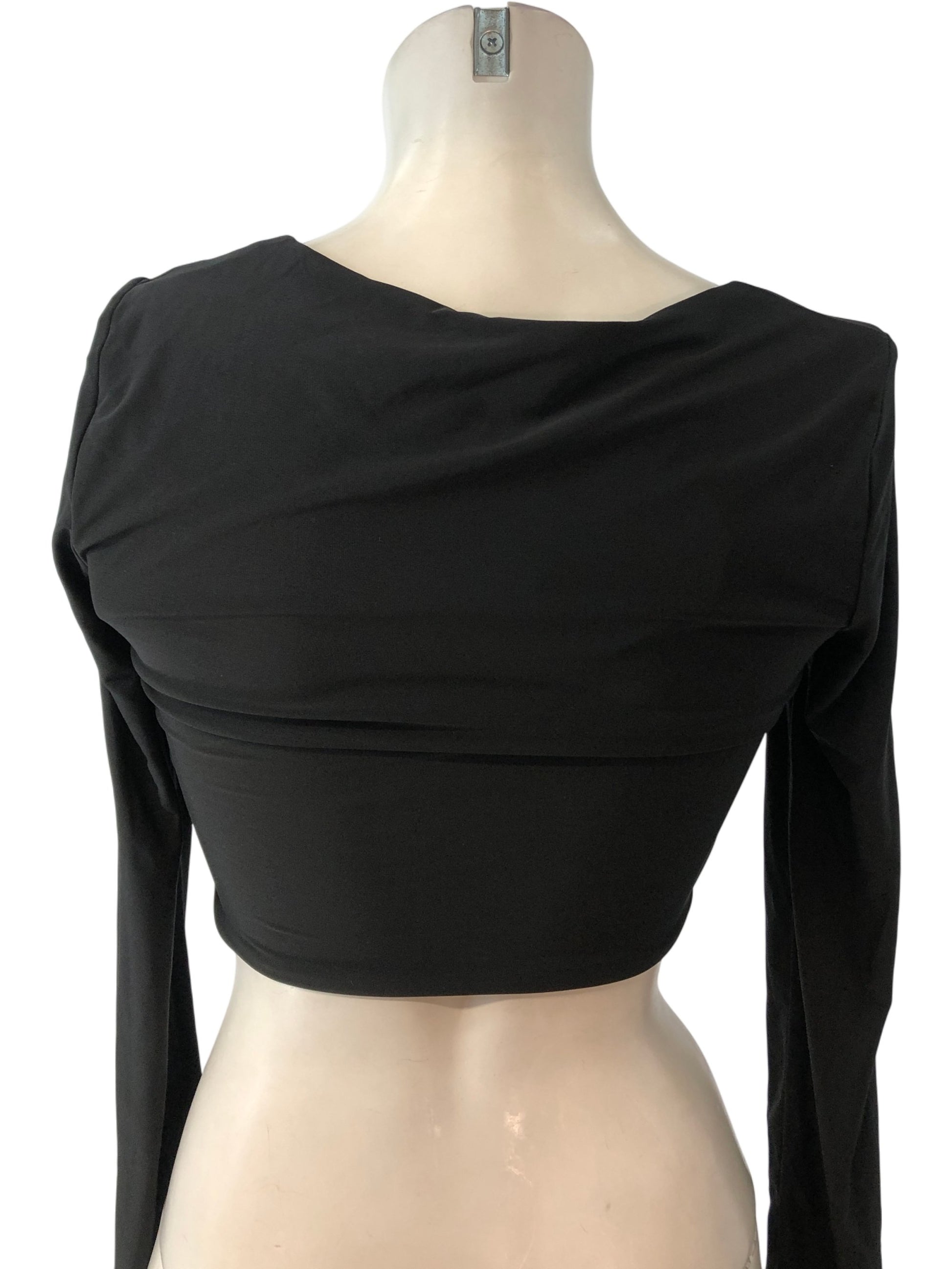 River Island Studio Long Sleeve Crop Top UK Size 8 Women's Black Fashion