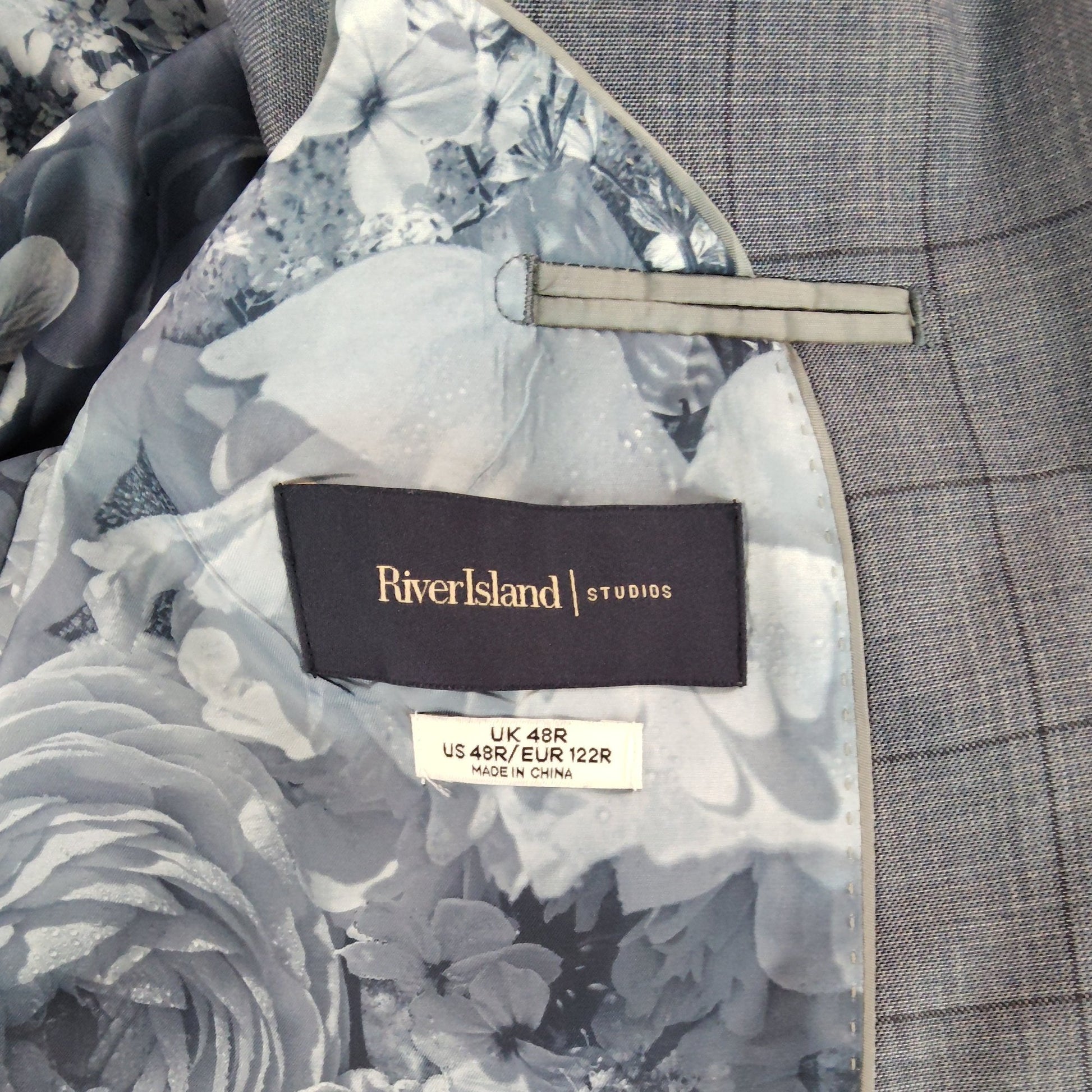 River Island Studios Men's Check Blazer UK48R Slim Fit Grey Formal Jacket