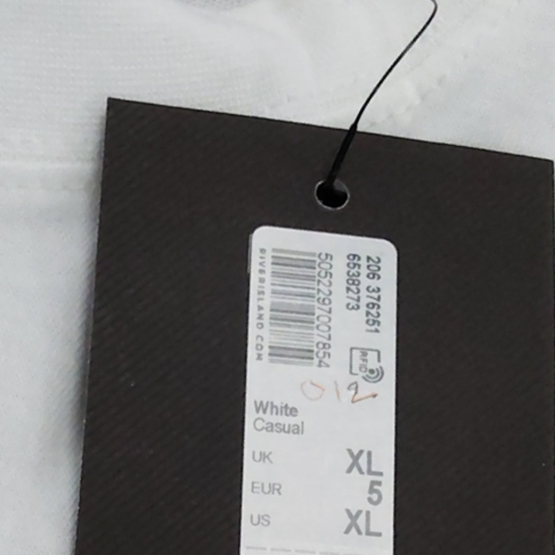 River Island Studios Men's White T-Shirt Size XL with Green Leaf Print Design