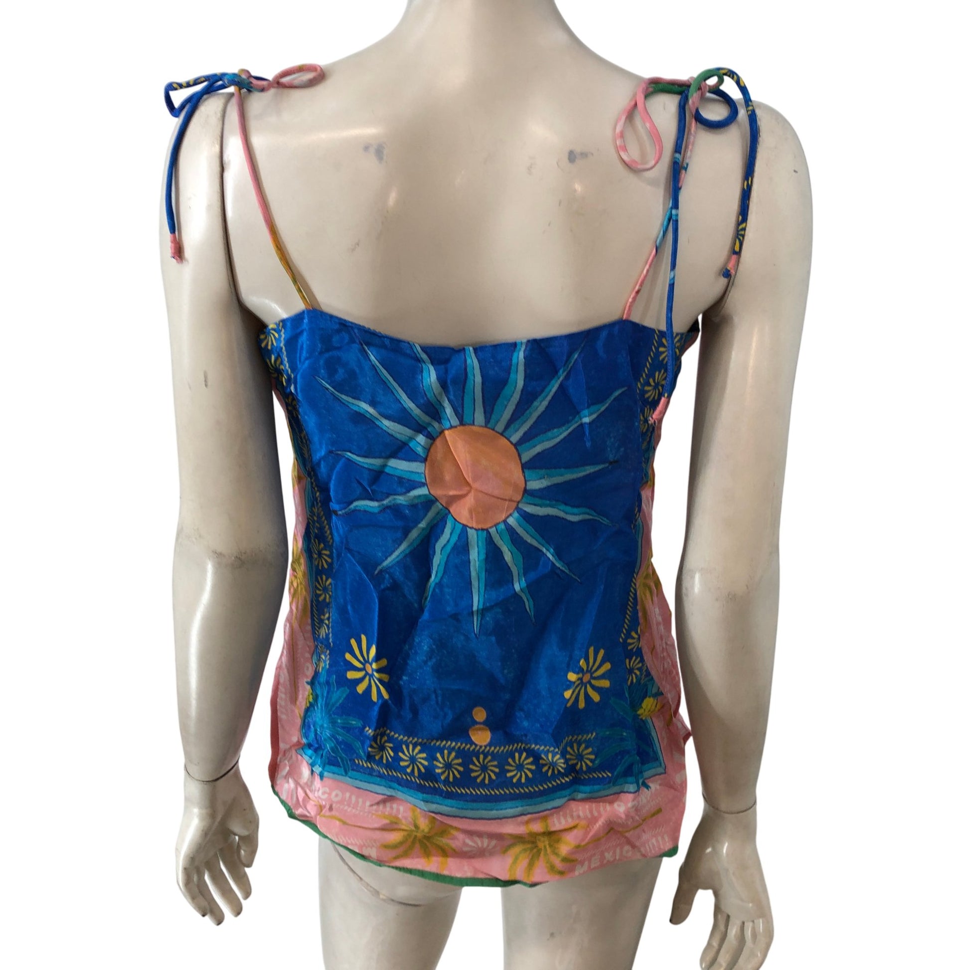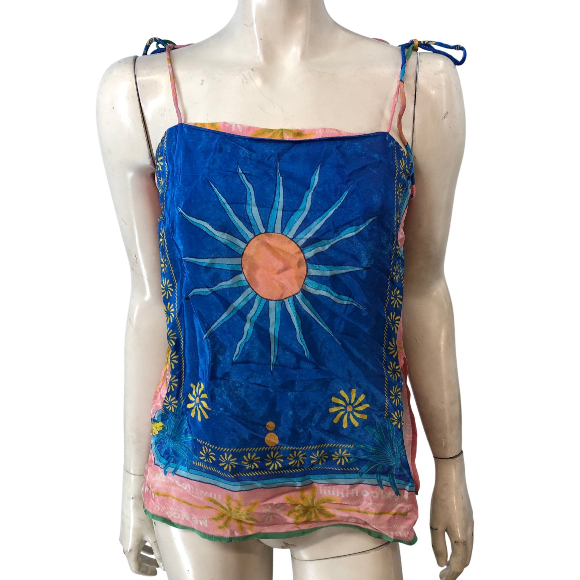 River Island UK S Women's Tank Top Blue Print Sun Design Spaghetti Strap