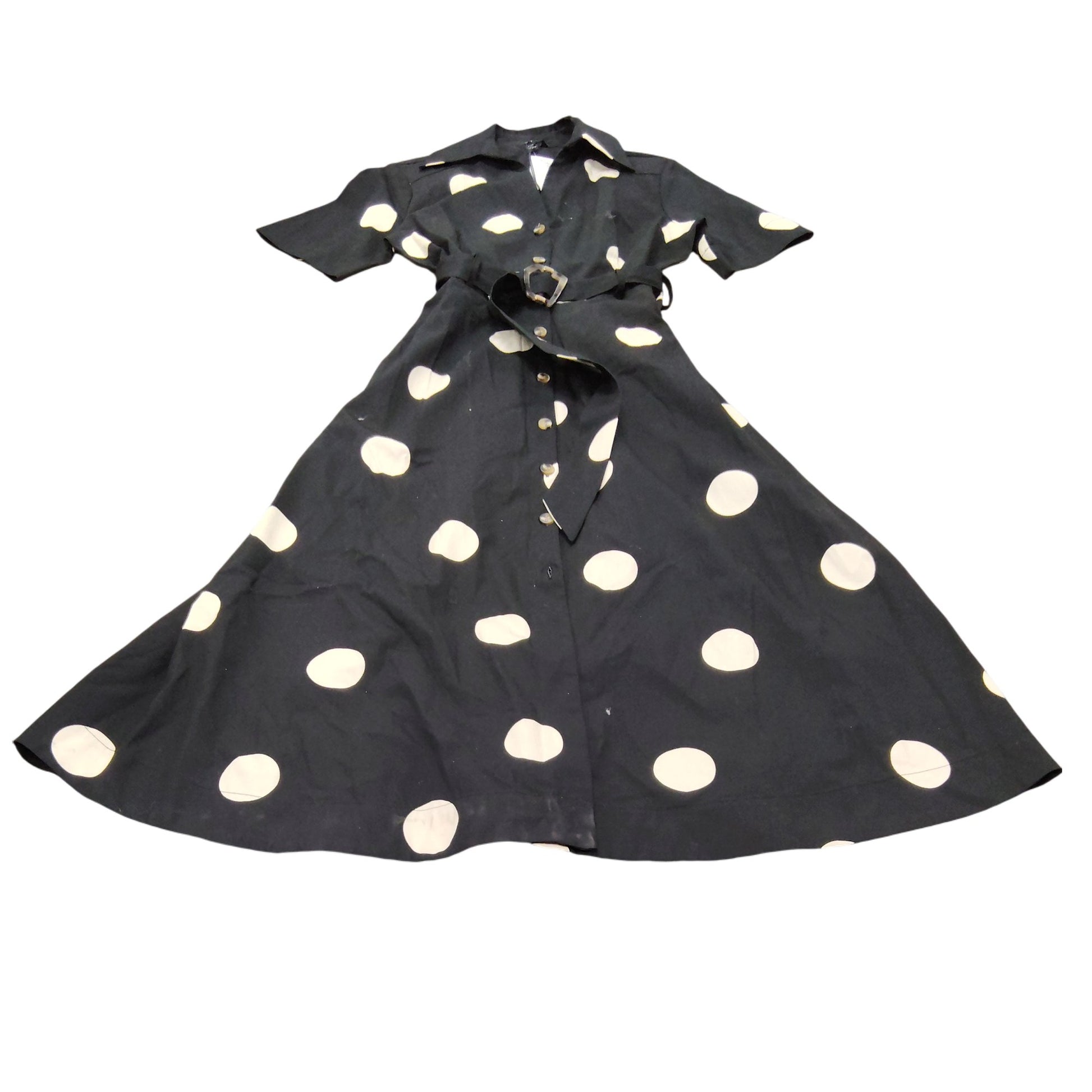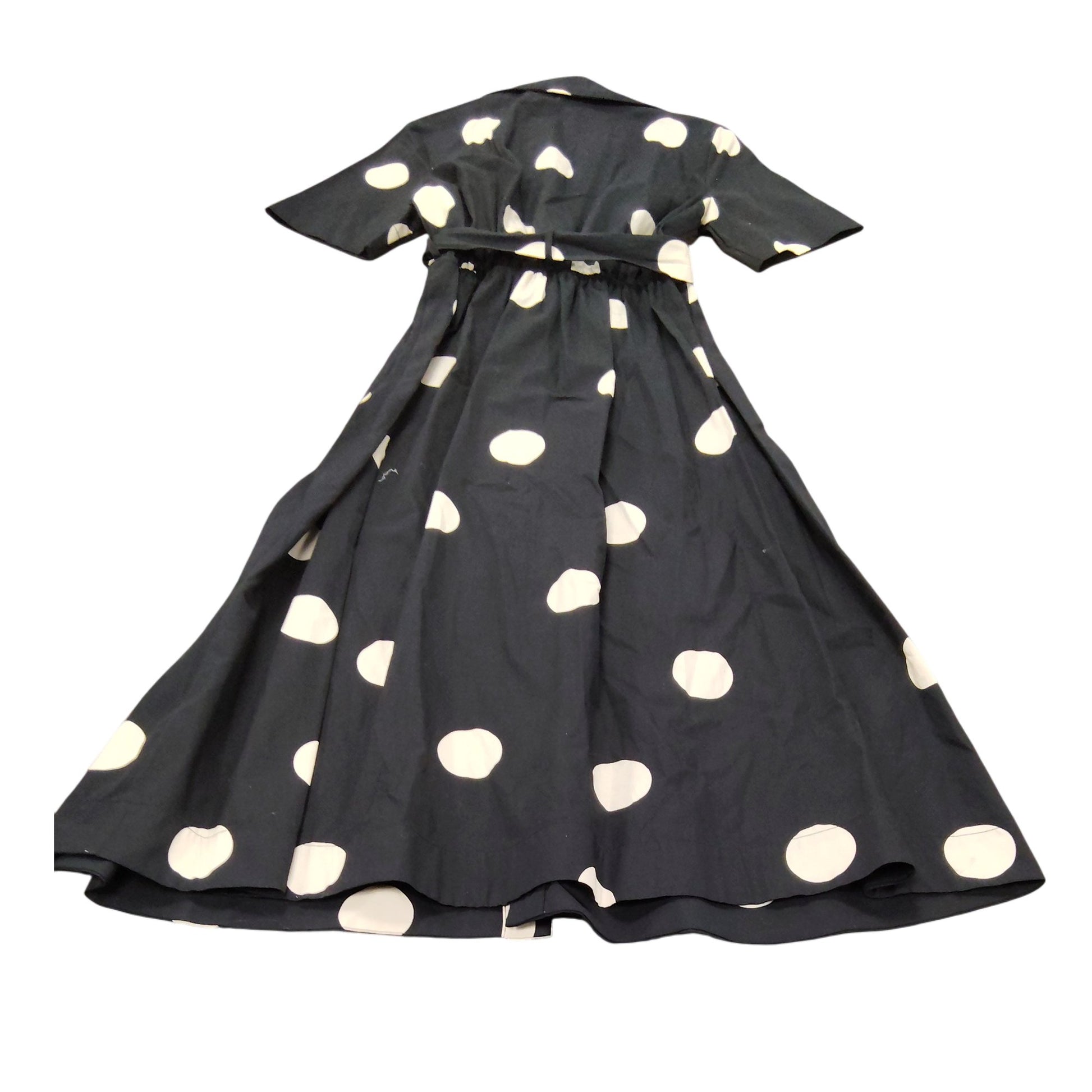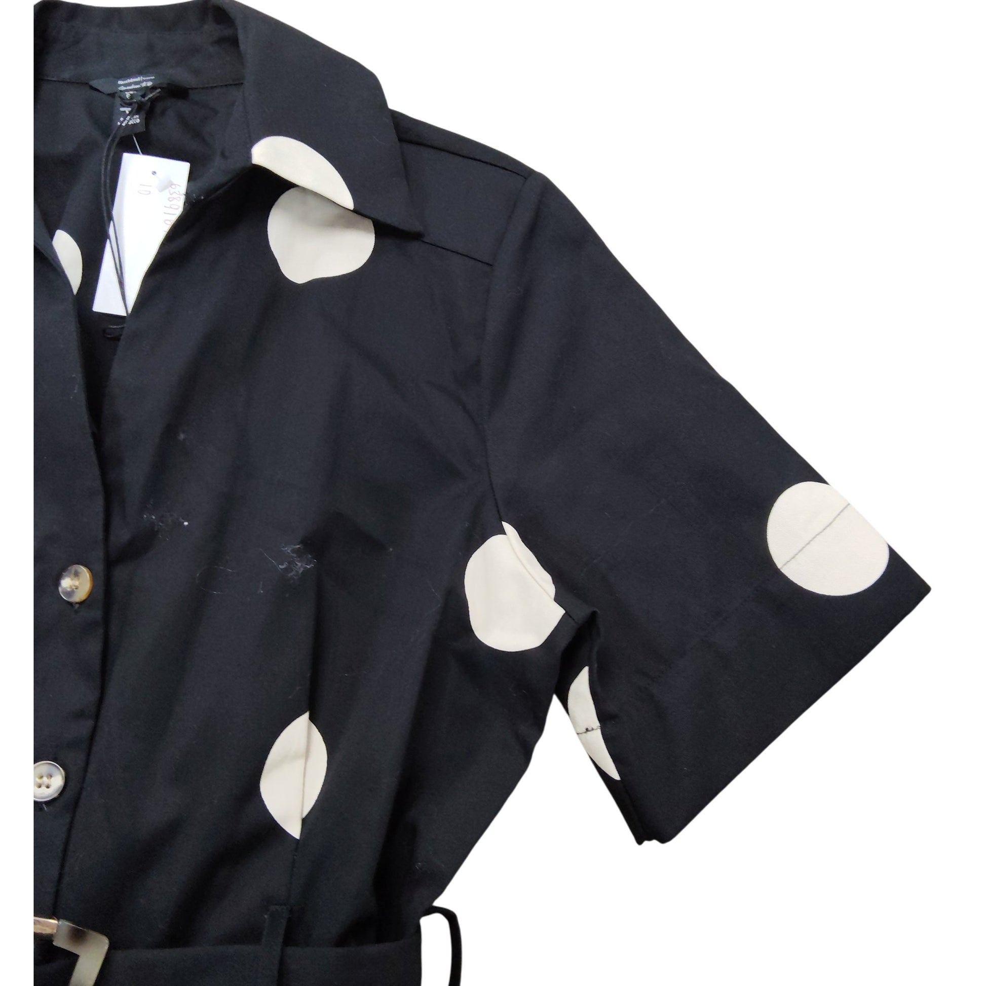River Island UK10 Women's Black White Polka Dot Midi Dress Belted Short Sleeve