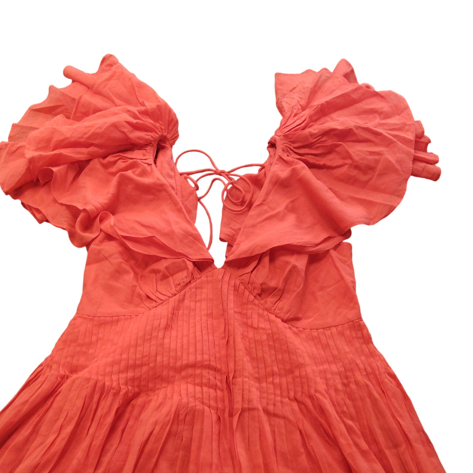 River Island UK10 Women's Orange Puff Sleeve Maxi Dress Boho Style Summer
