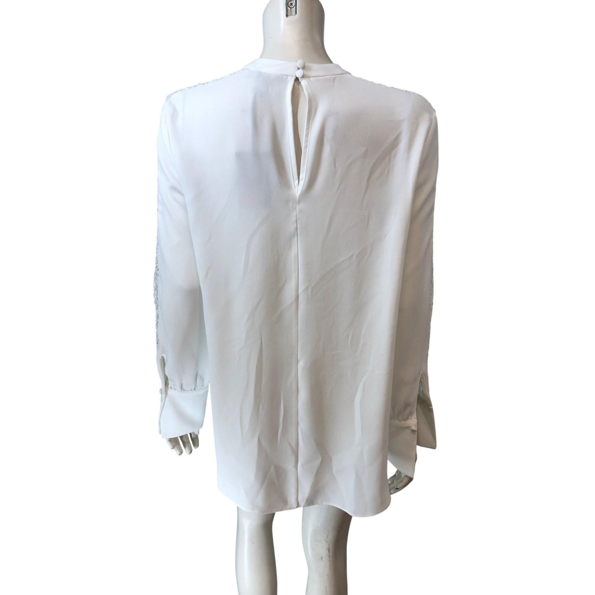 River Island UK12 Women's White Long Sleeve Blouse With Lace Detail