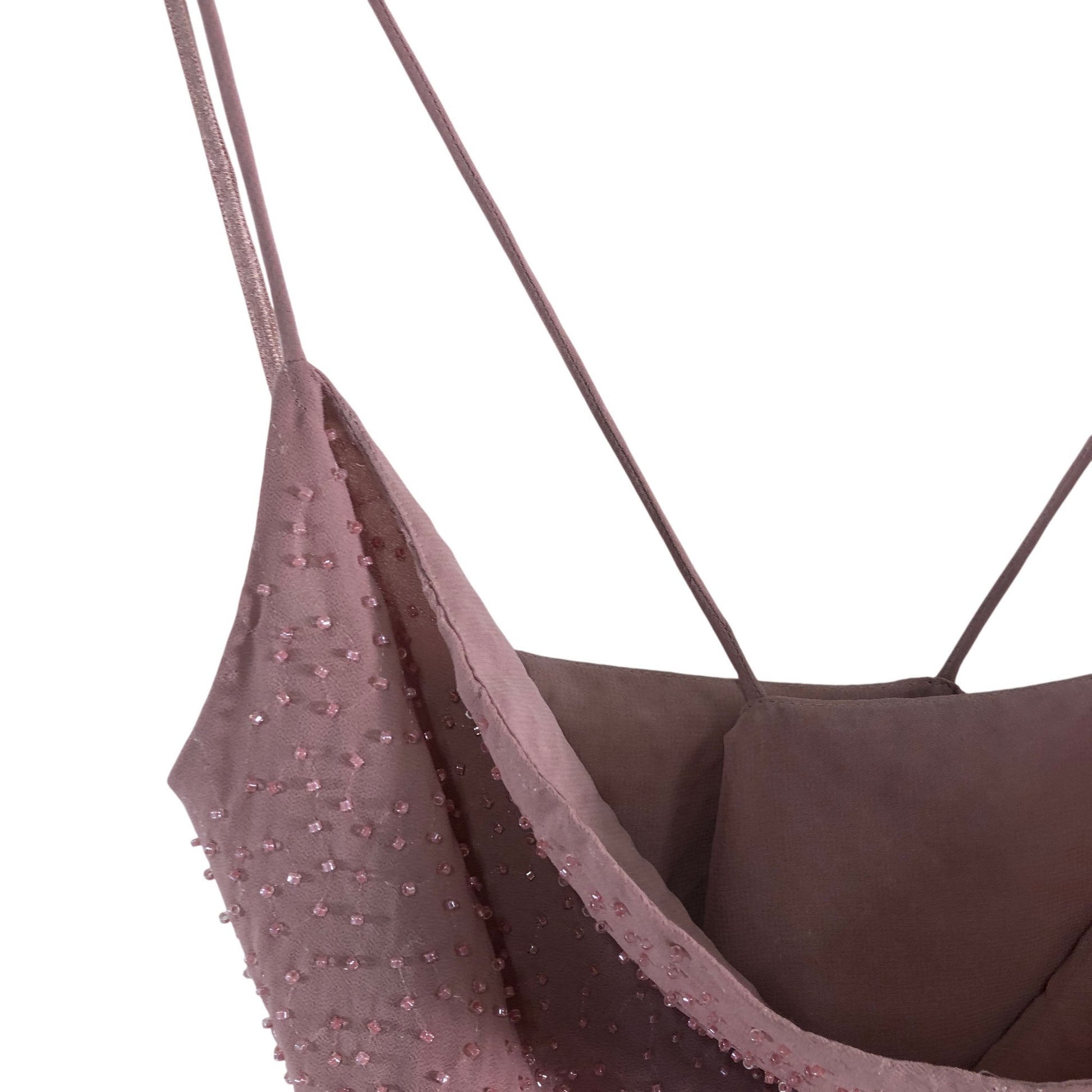 River Island UK16 Women's Cowl Neck Sleeveless Top Pink Beaded Design