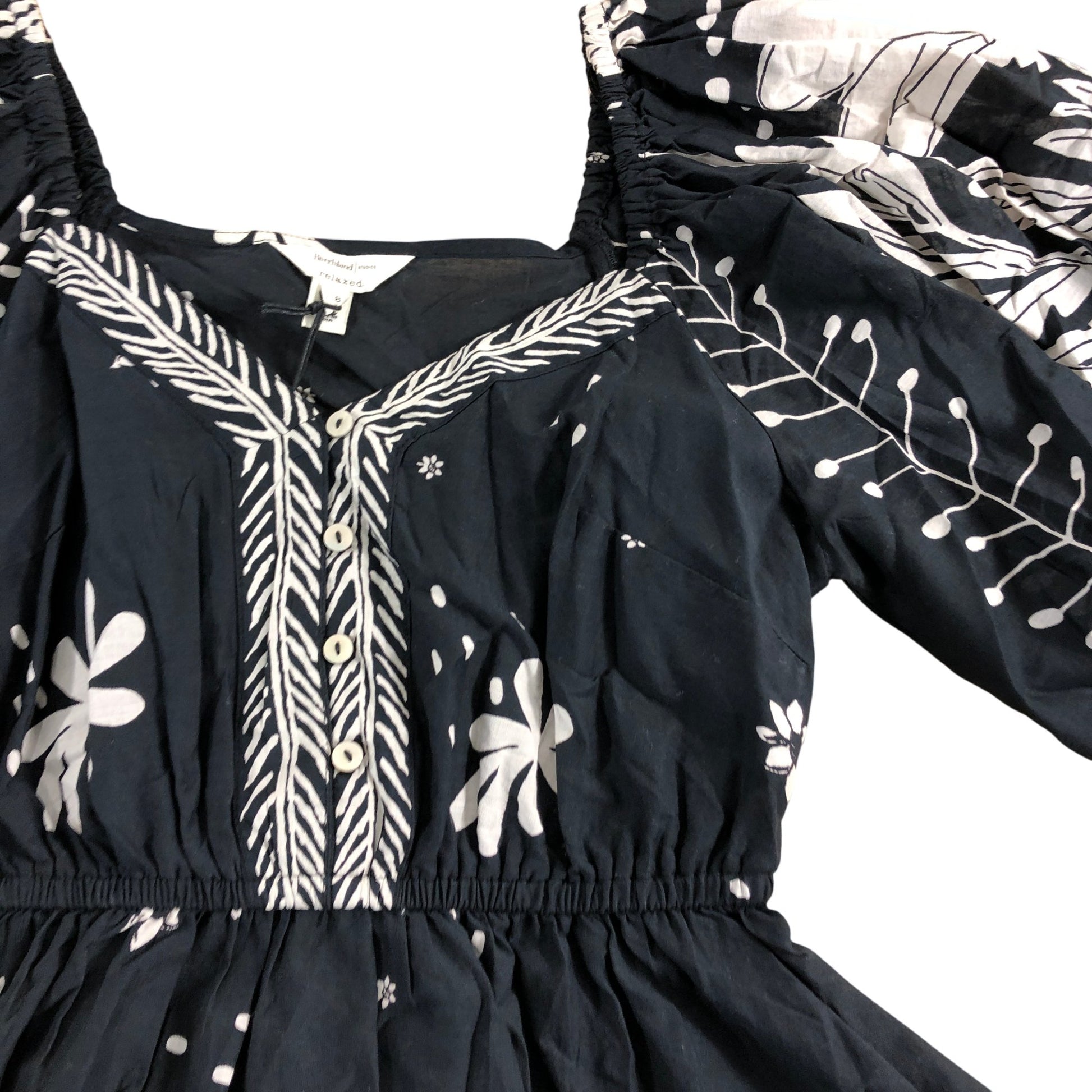 River Island UK8 Women's Black Floral Blouse 100 Cotton Puff Sleeve Top