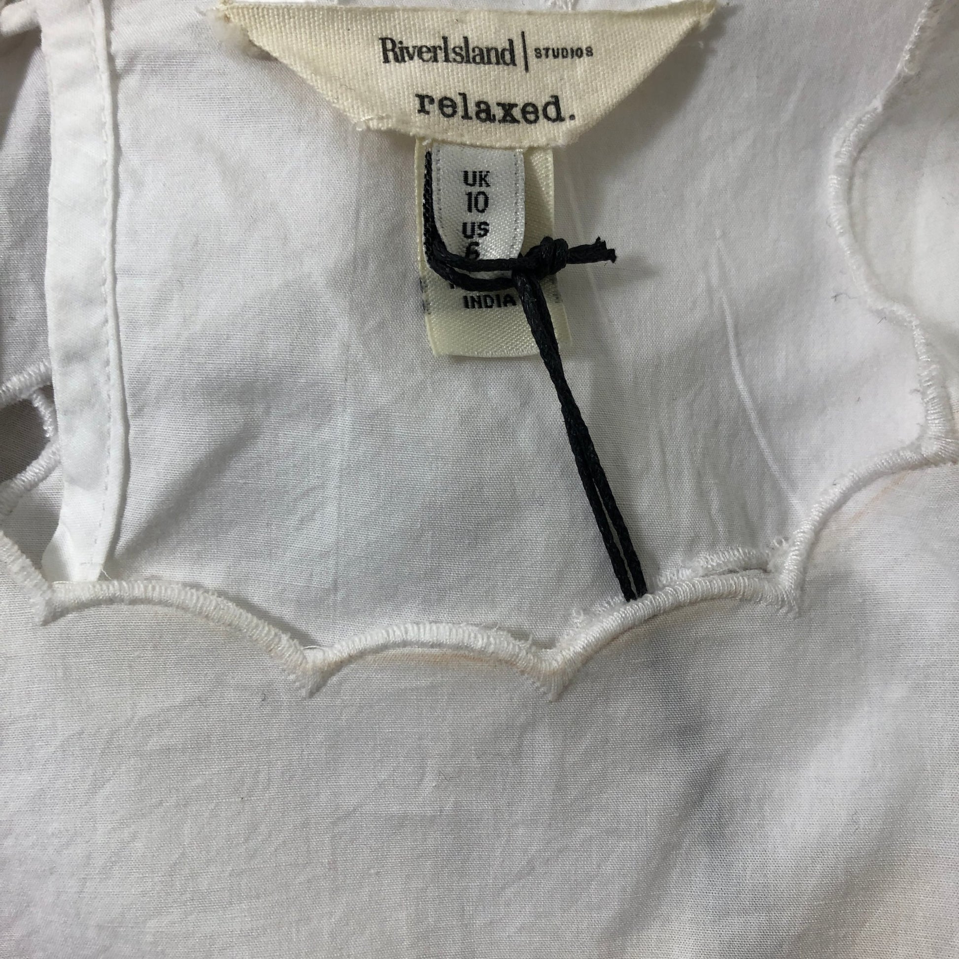 River Island White Floral Embroidered Blouse Size UK10 Women's Relaxed