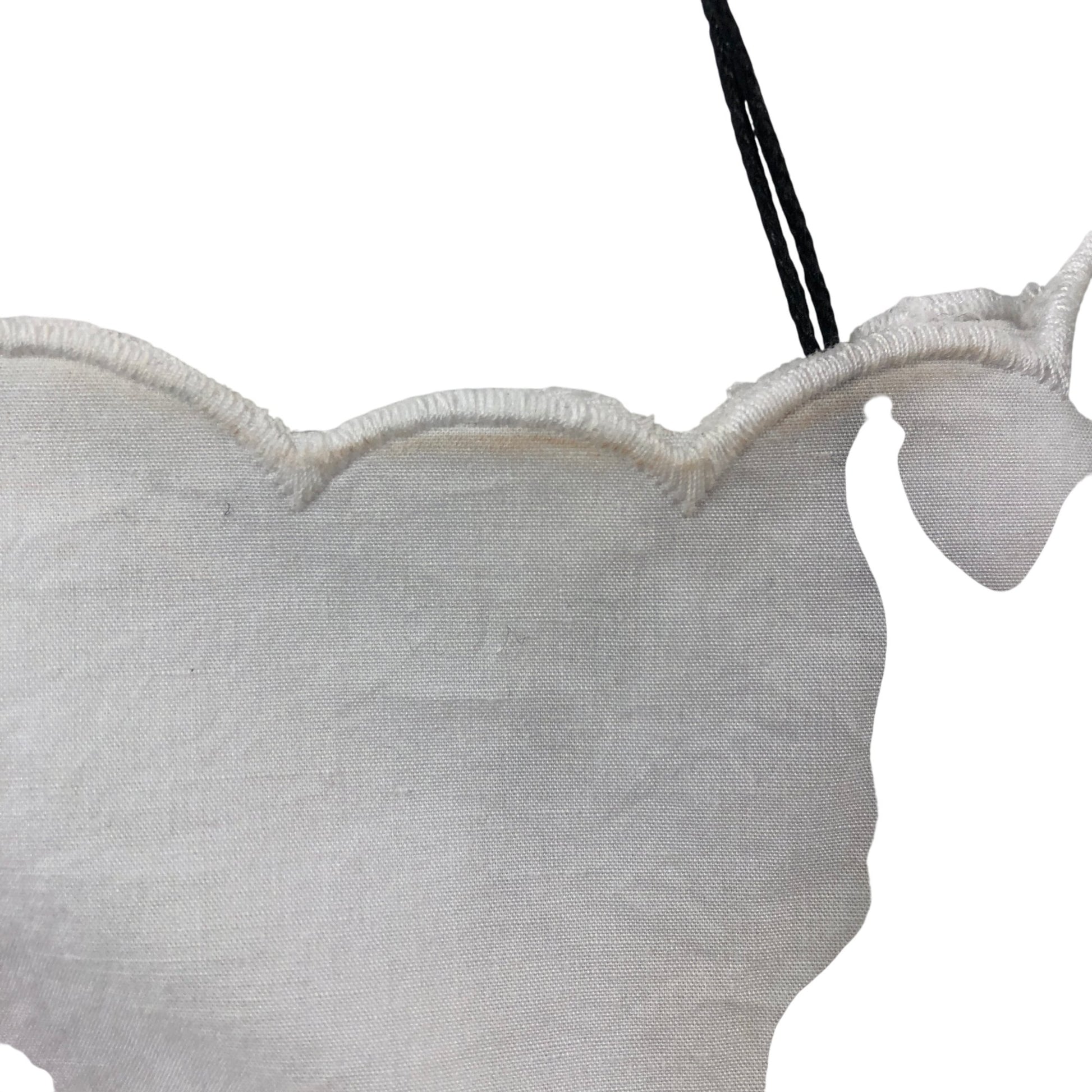 - Neckline: Scalloped