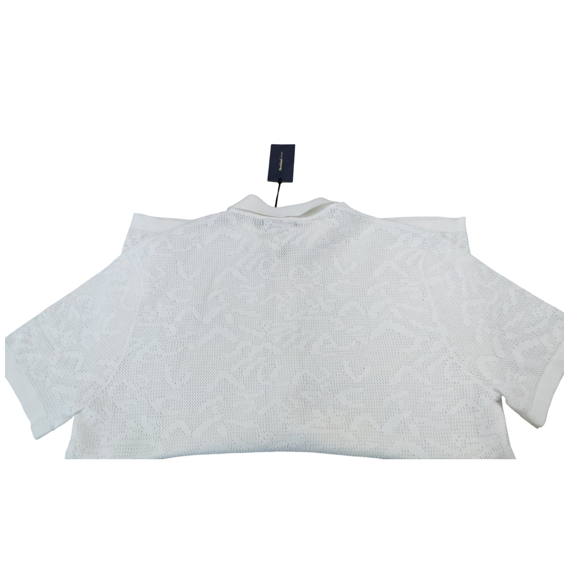River Island White Polo Shirt UK L Men's Short Sleeve Open Knit