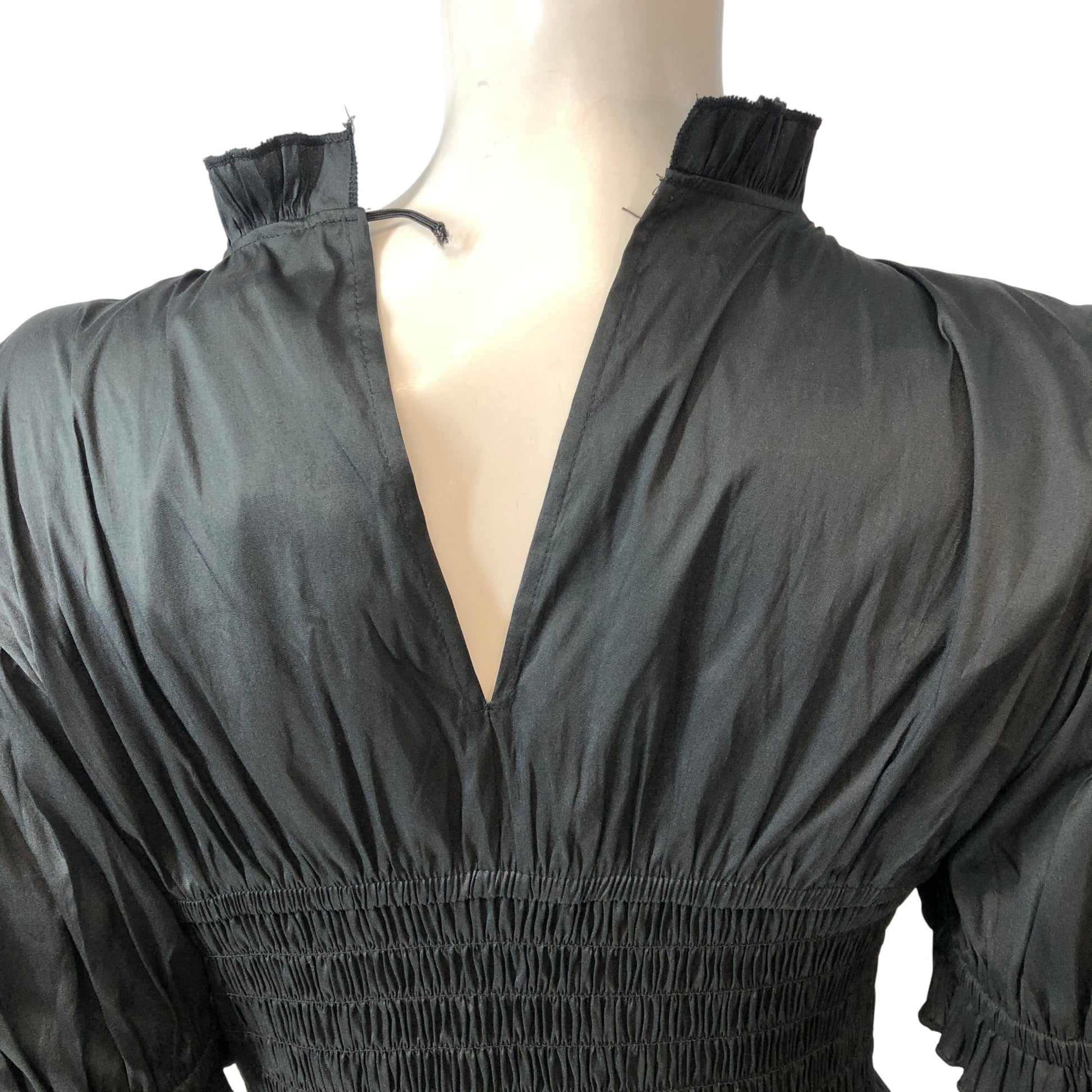 River Island Women Black Smocked Puff Sleeve Dress UK Size 16