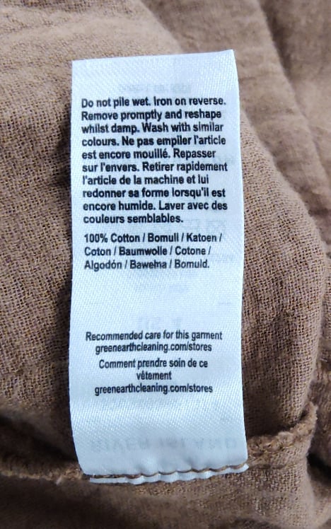 - Care Instructions: Do not spin twist, Iron on reverse