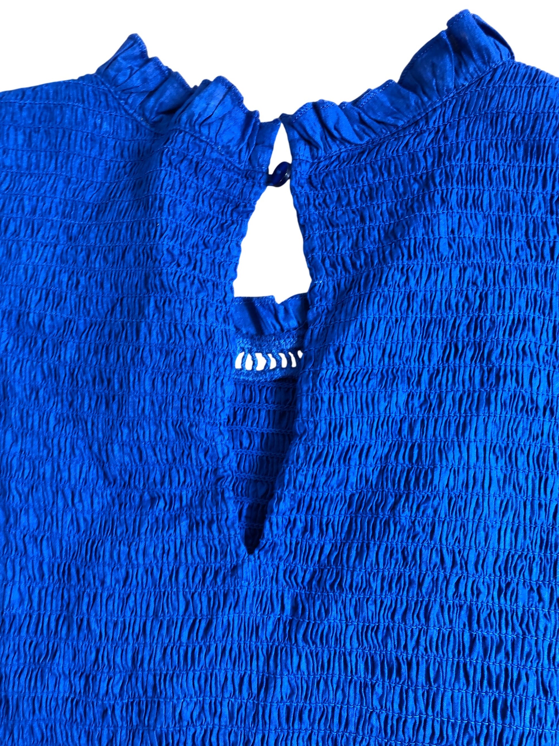 River Island Women’s UK14 Blue Smocked Top with Puff Sleeves and Ruffles