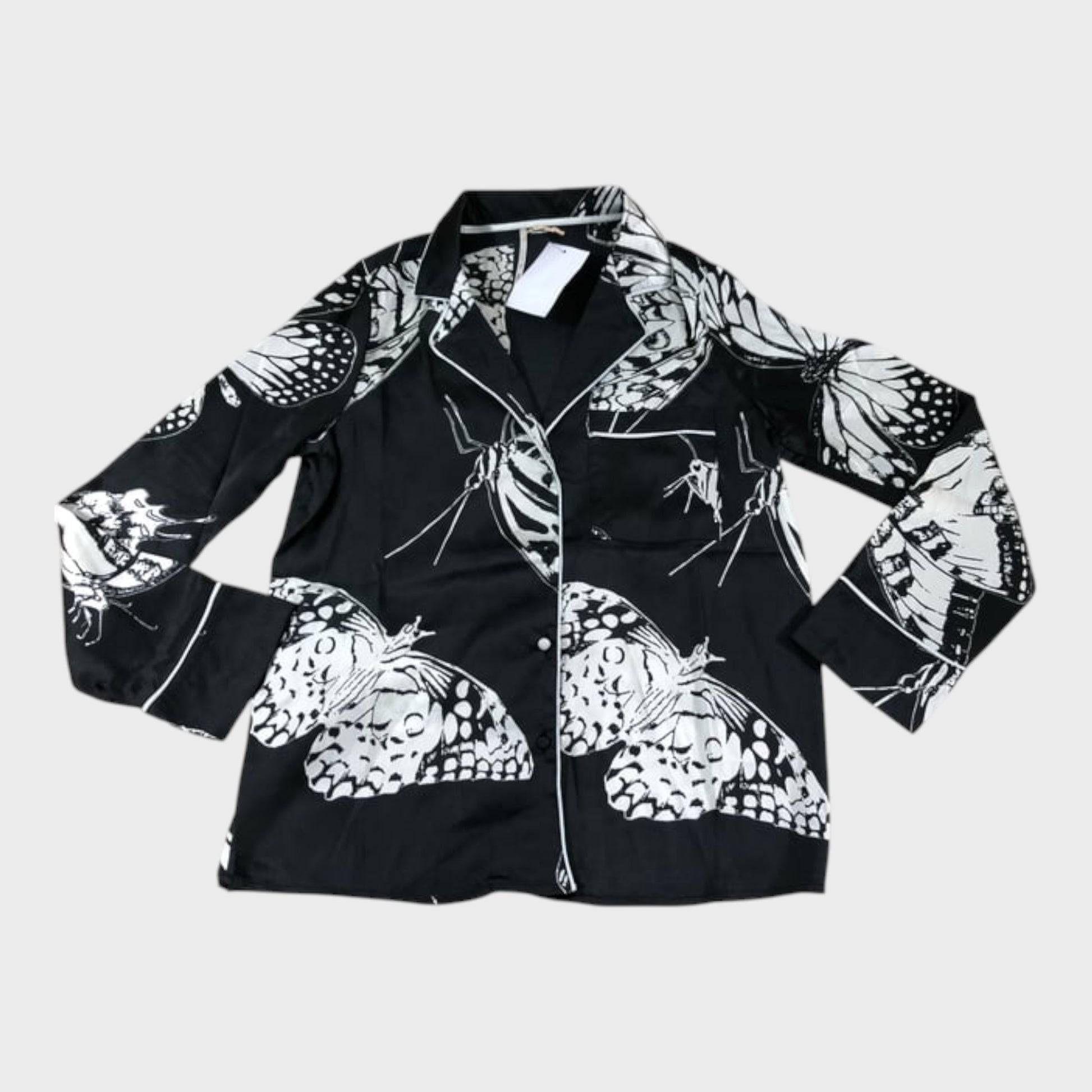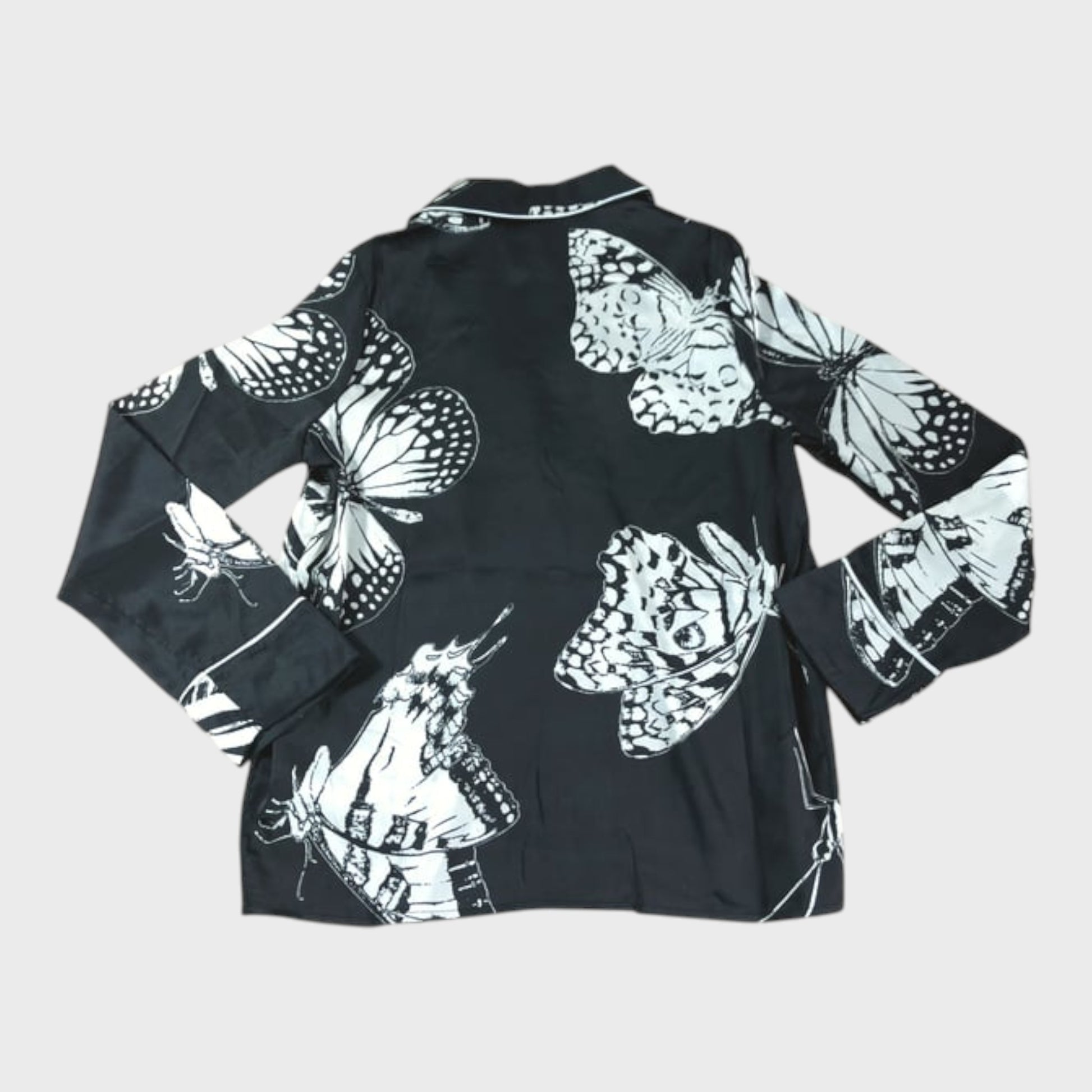 River Island Women's Black Butterfly Print Pyjama Top Size XS Long Sleeve