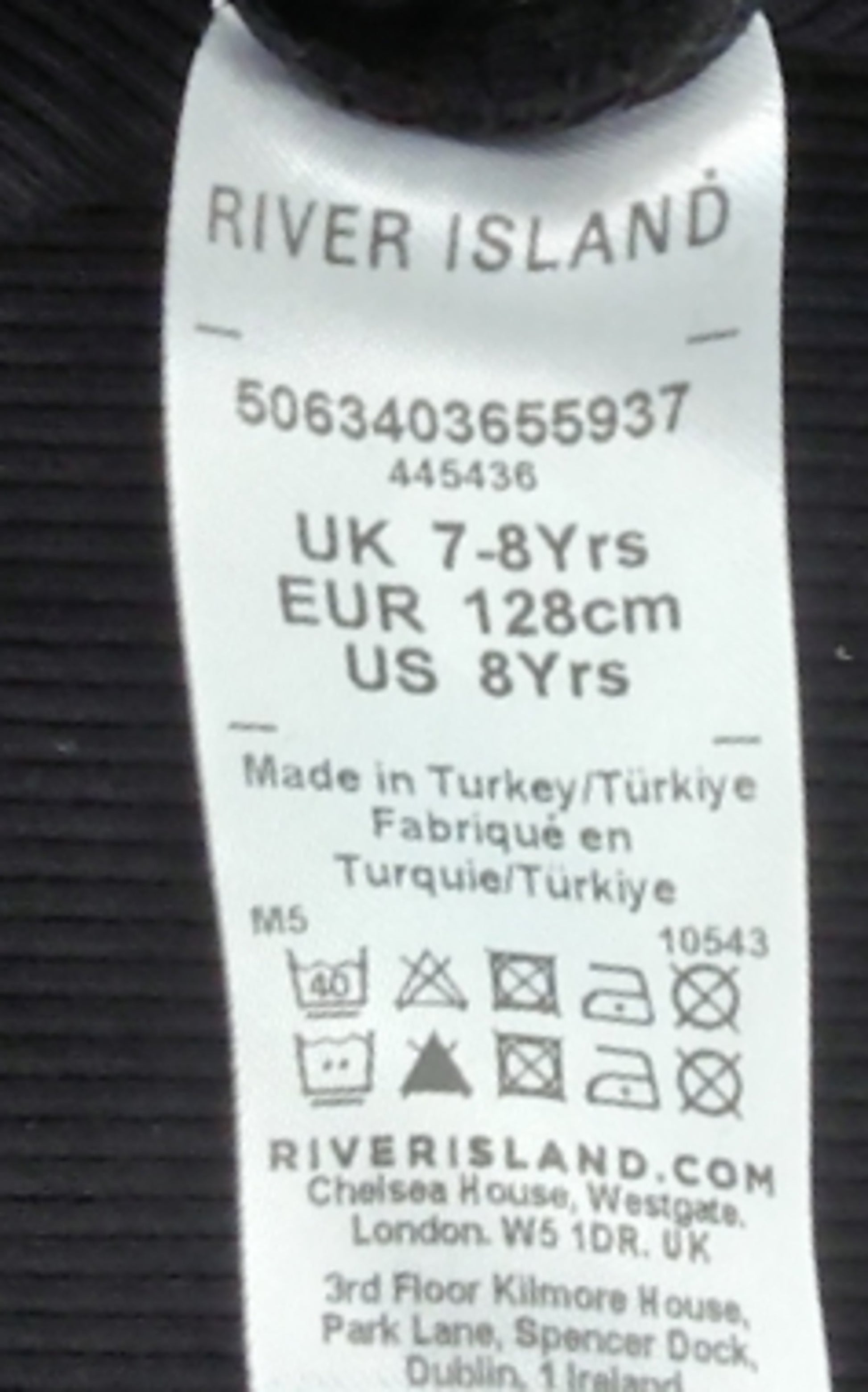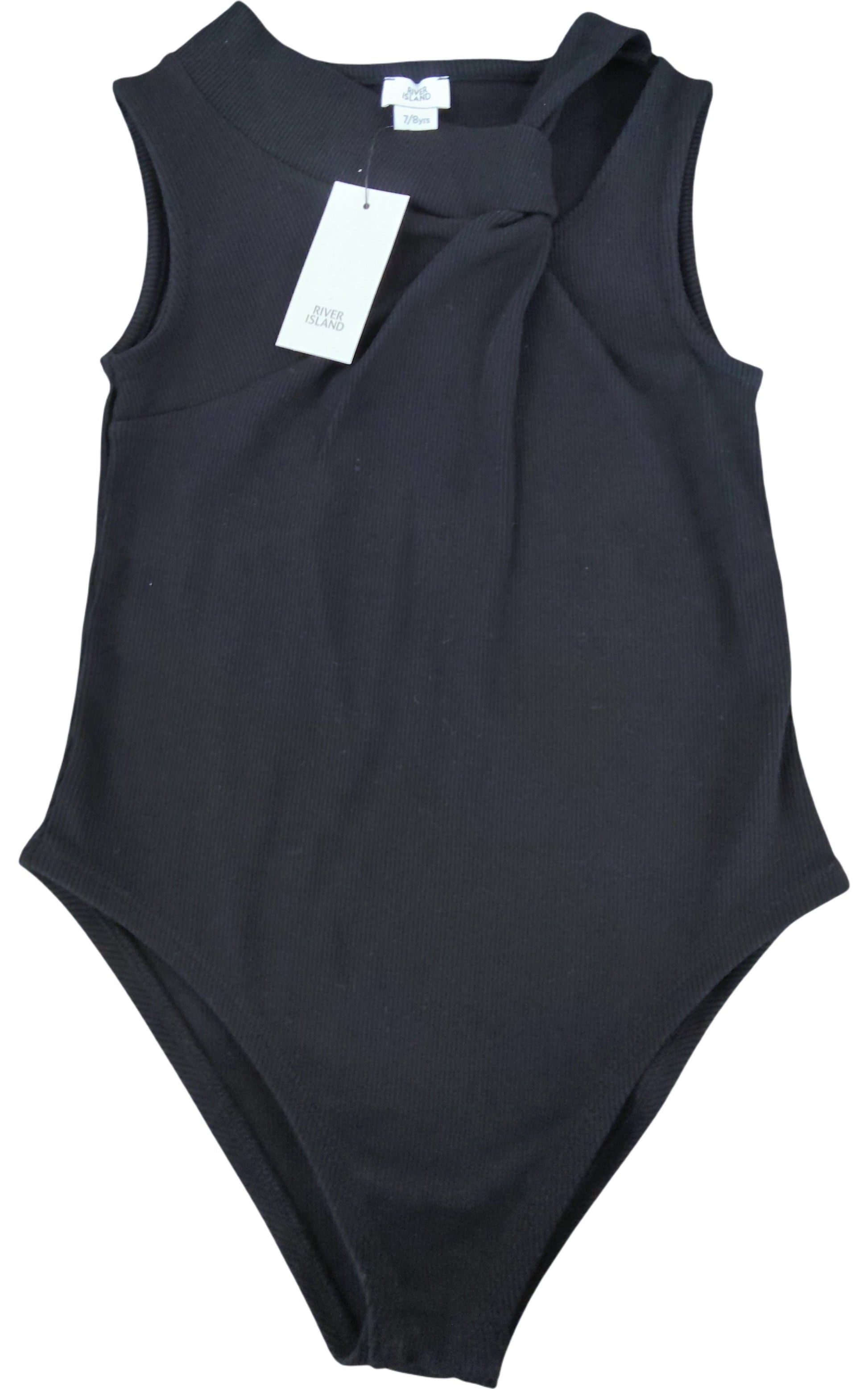 River Island Women's Black Ribbed Bodysuit 7-8 Years Sleeveless Knot Detail