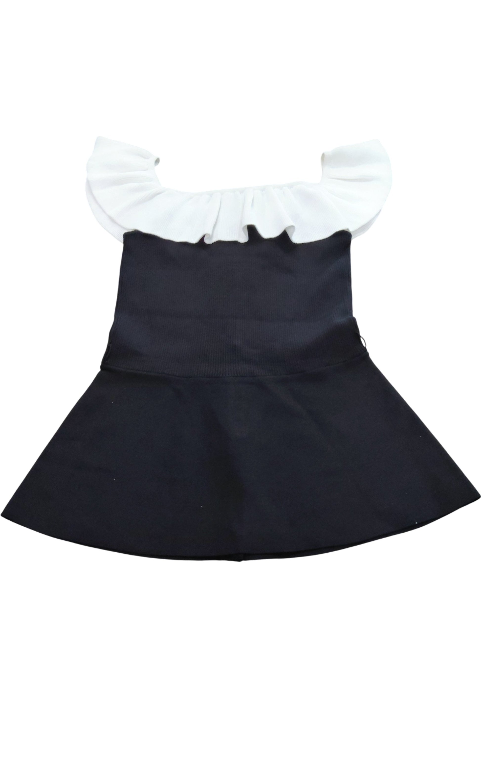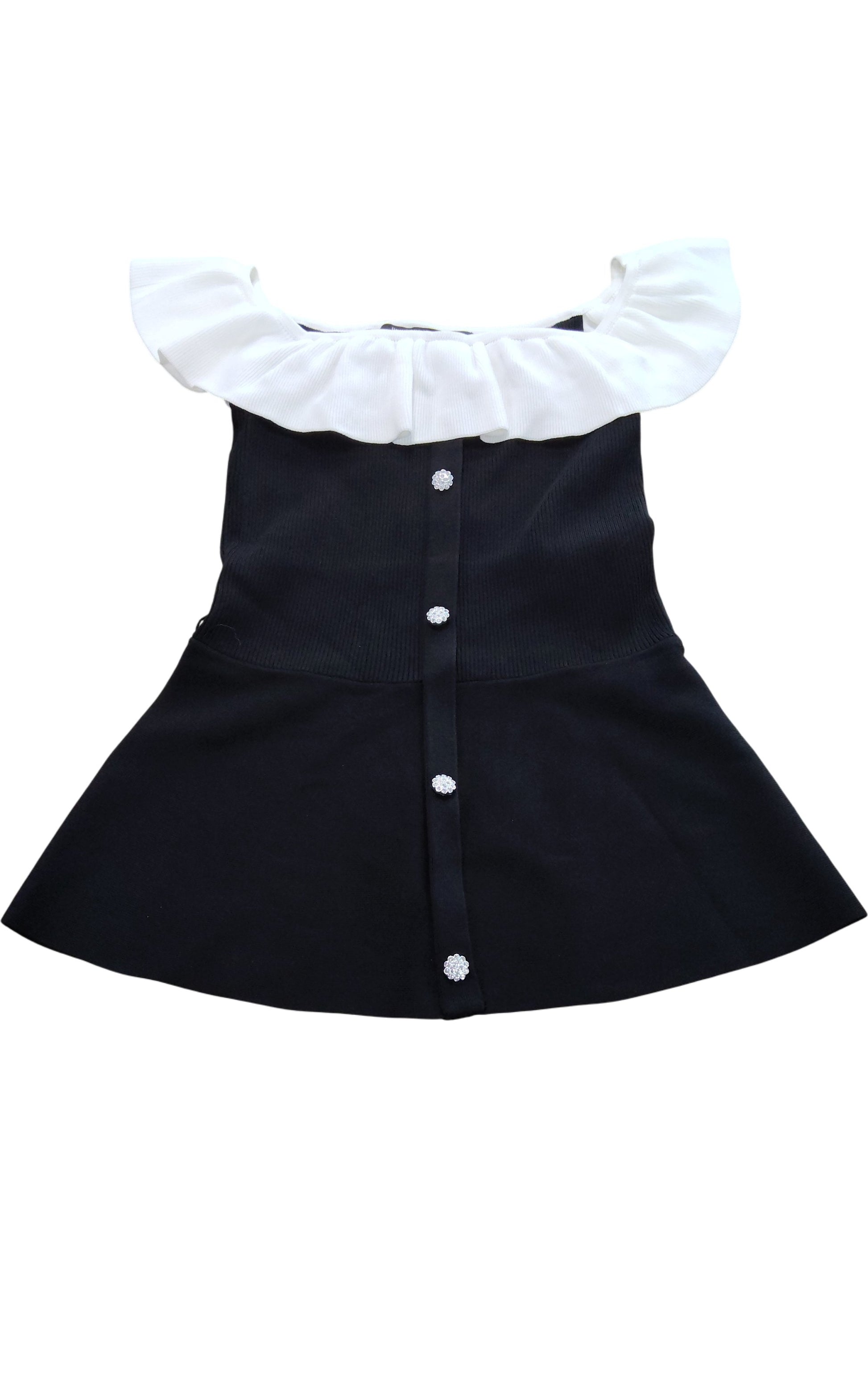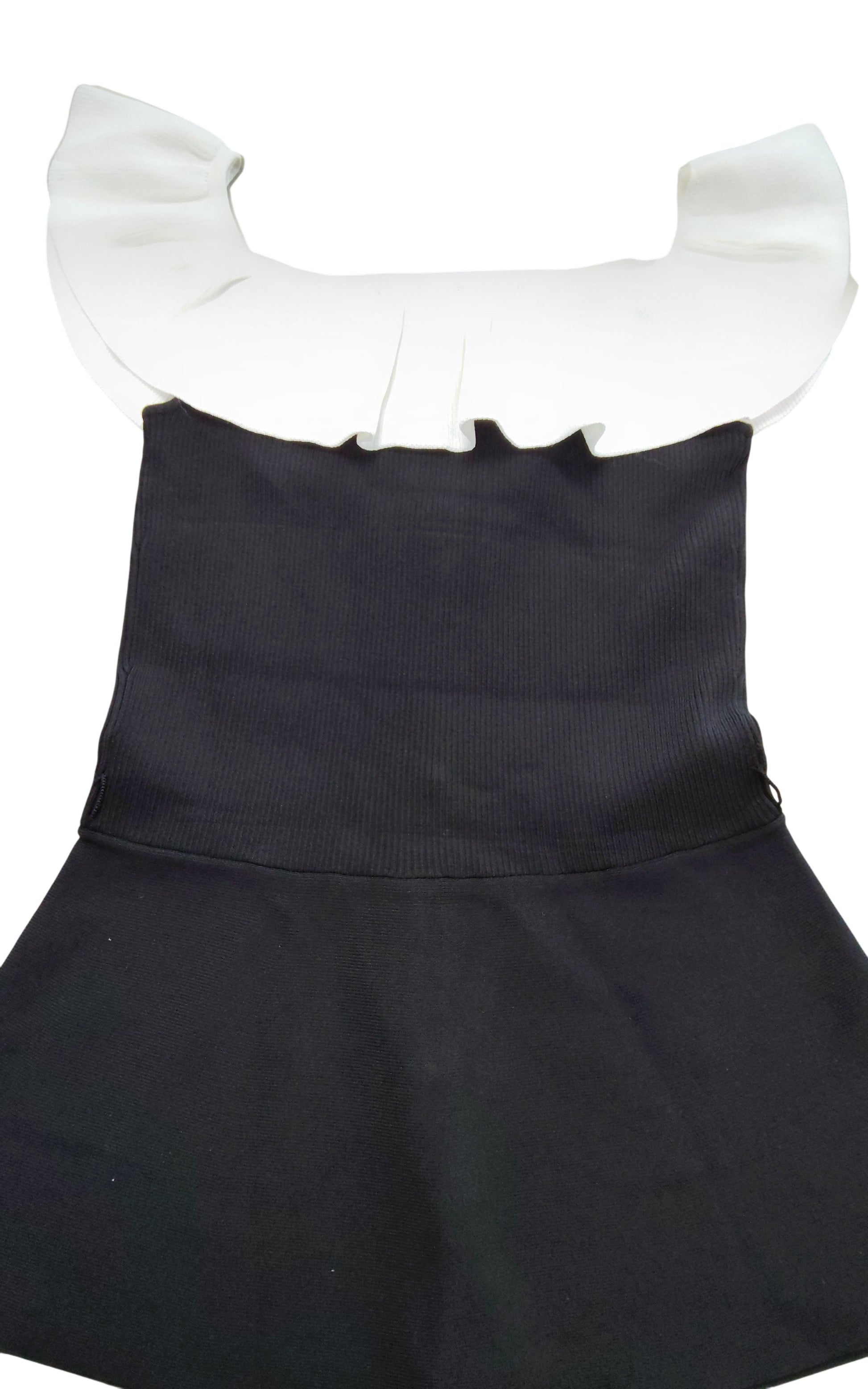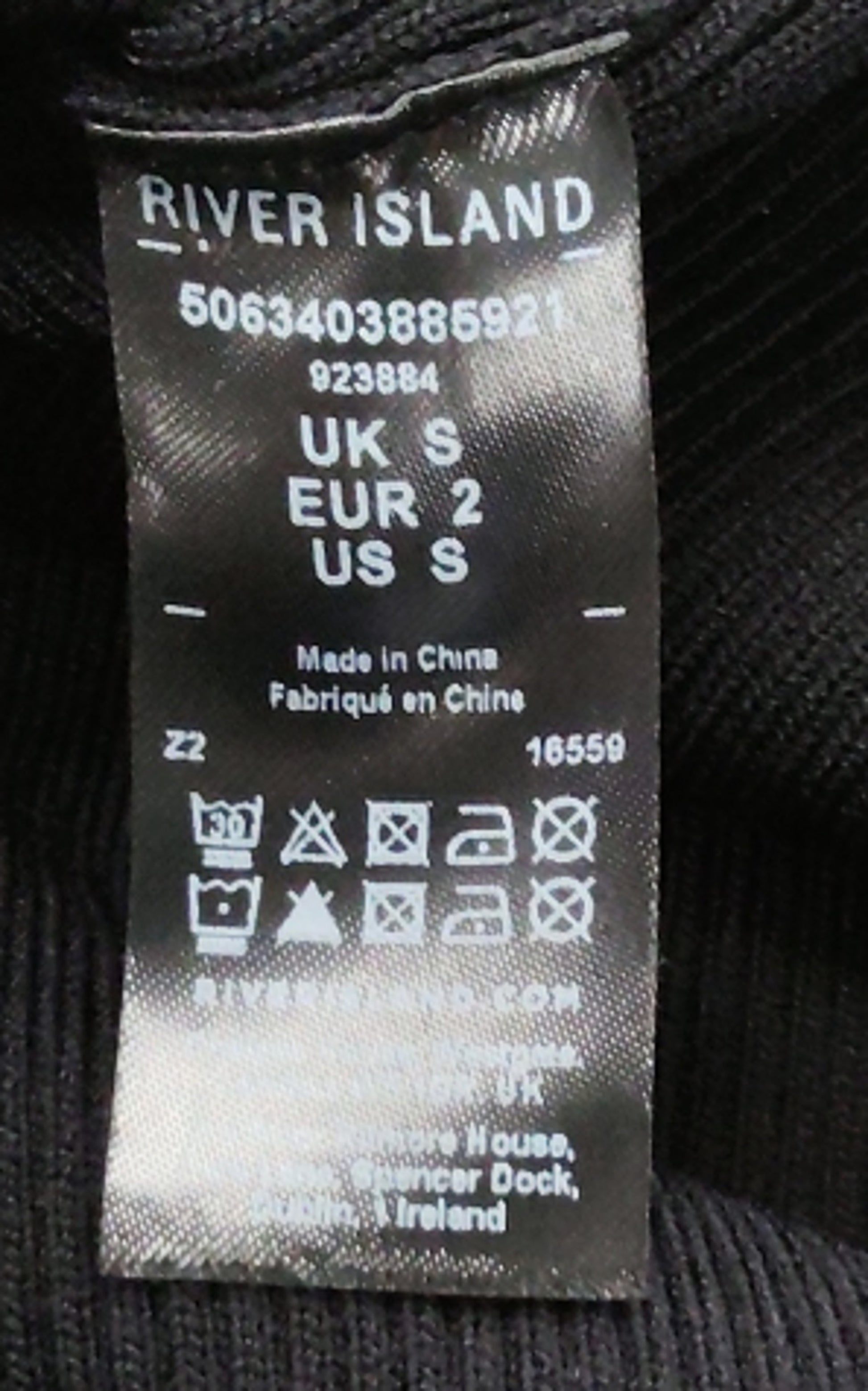 River Island Women's Black Top Size S With White Ruffled Neckline
